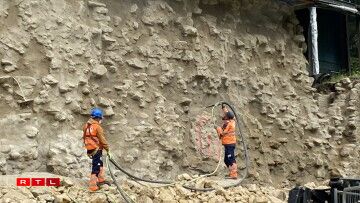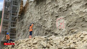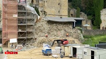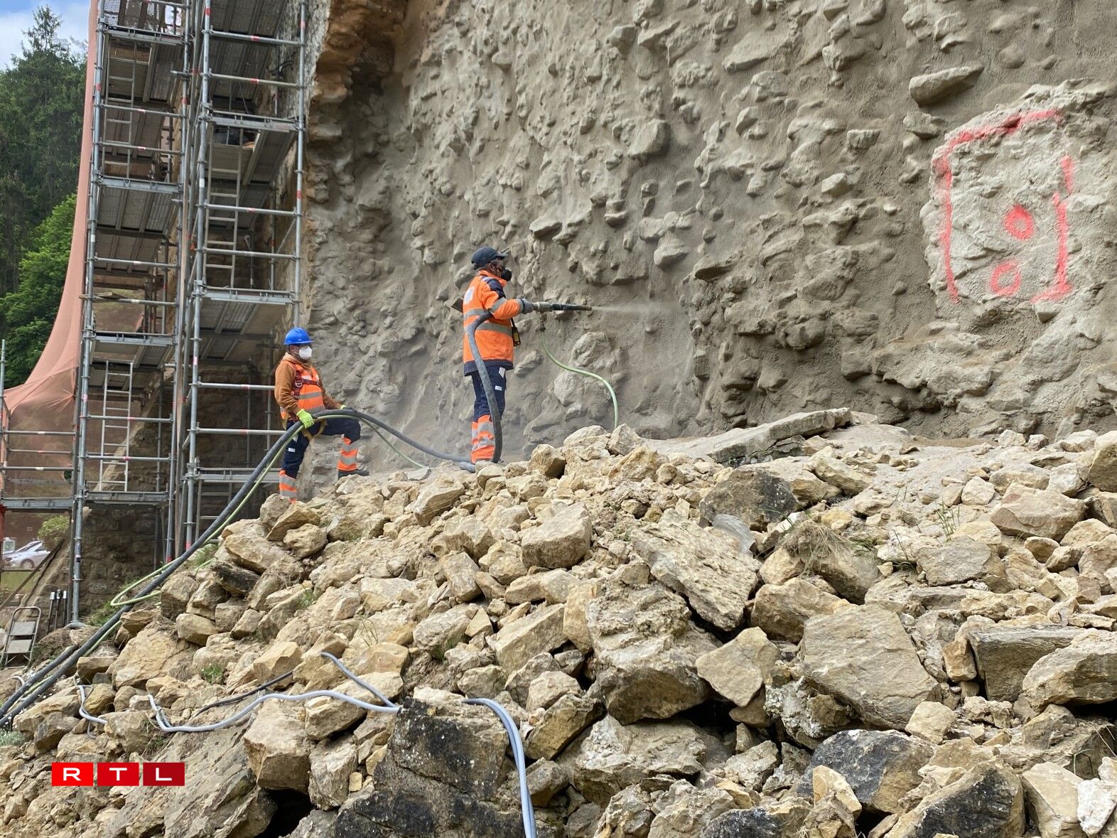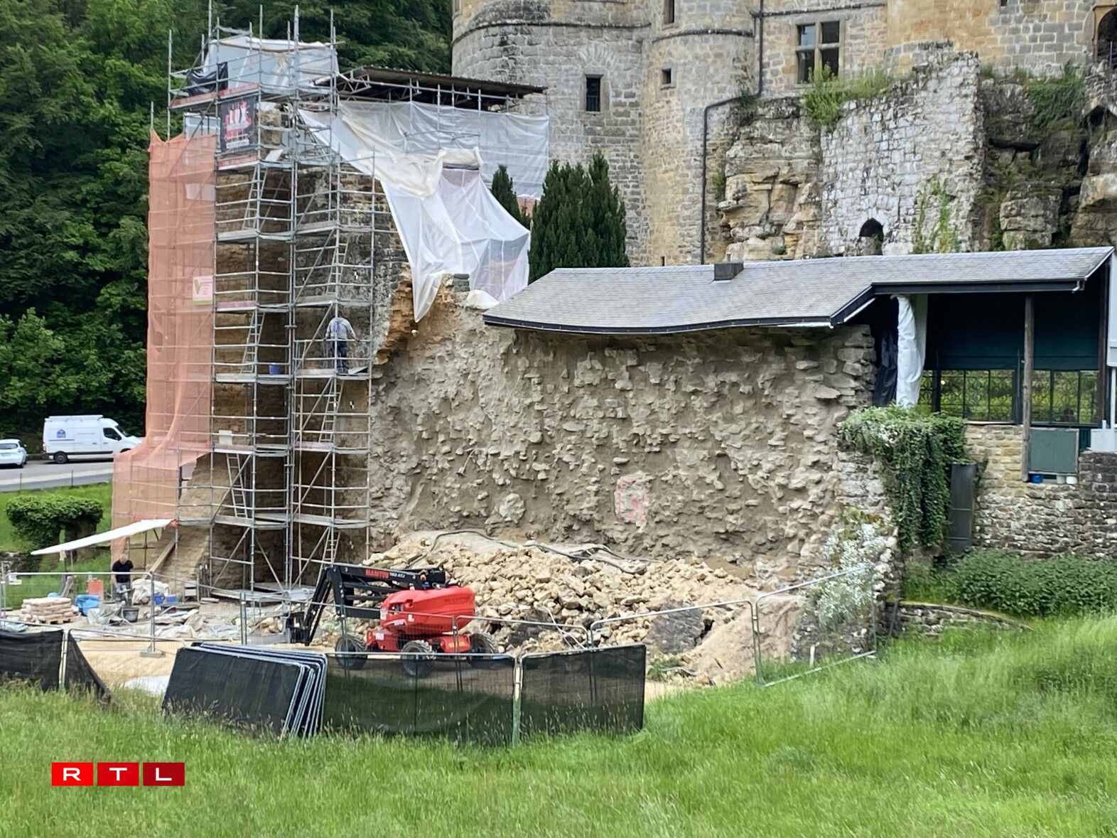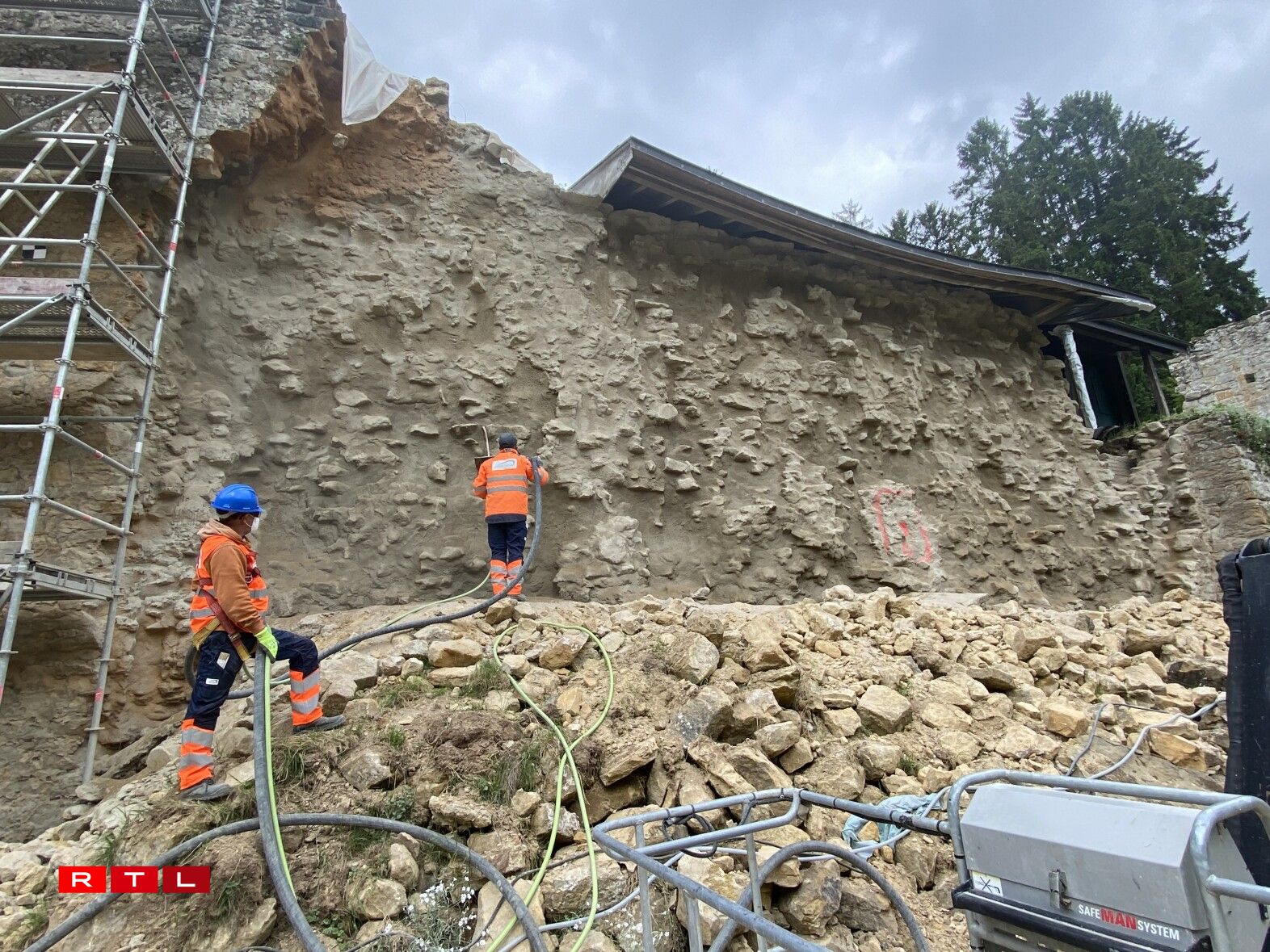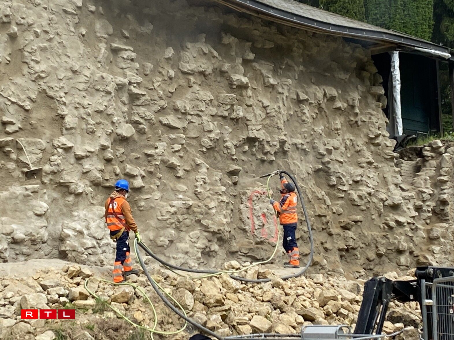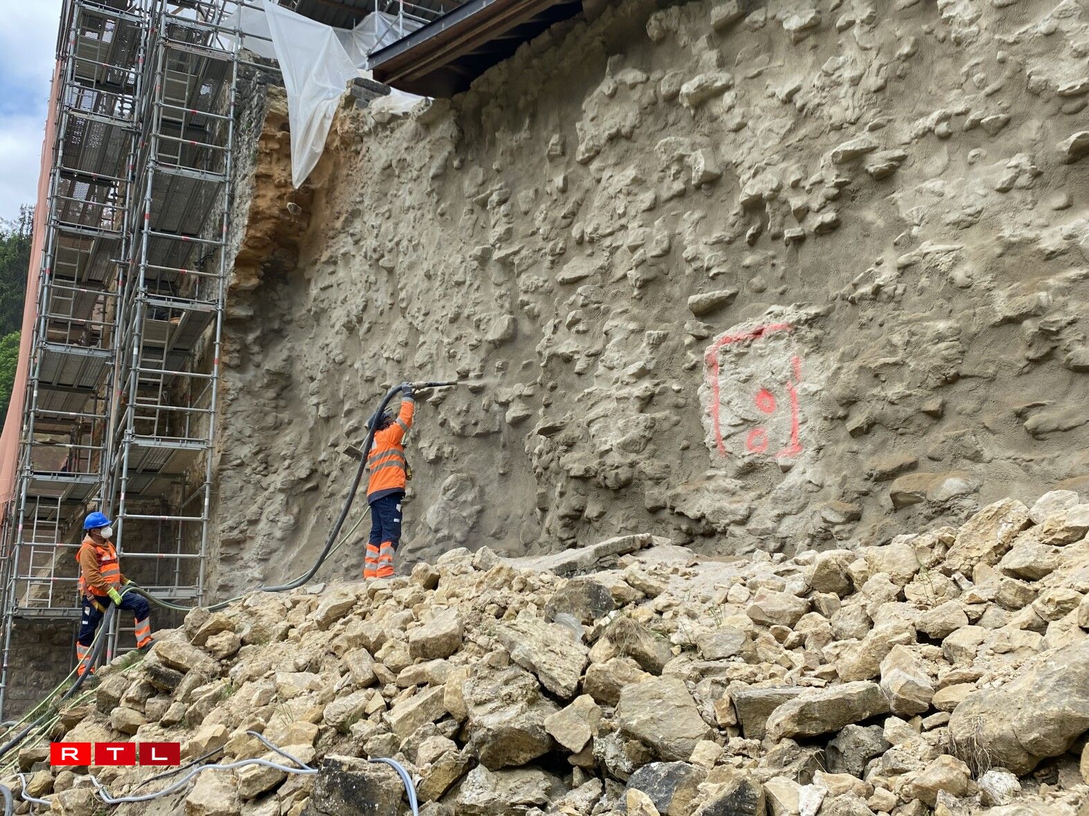 Aarbechten un der Mauer vun der Beeforter Buerg (23.5.23)