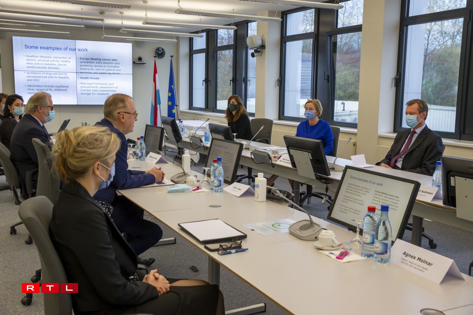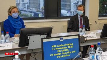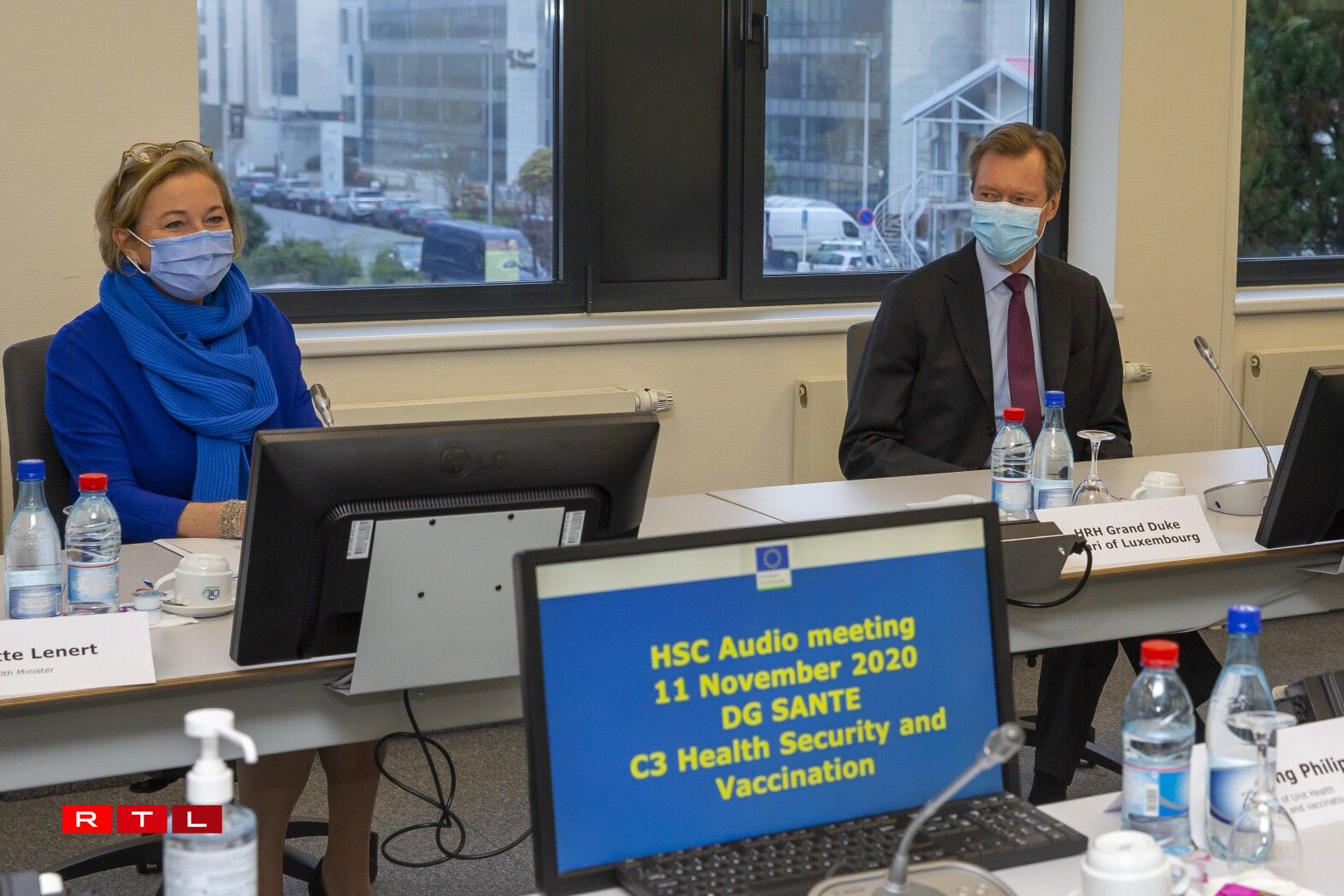 Paulette Lenert a Grand-Duc Henri bei der Santéesdirektioun vun der EU-Kommissioun (11.11.20)