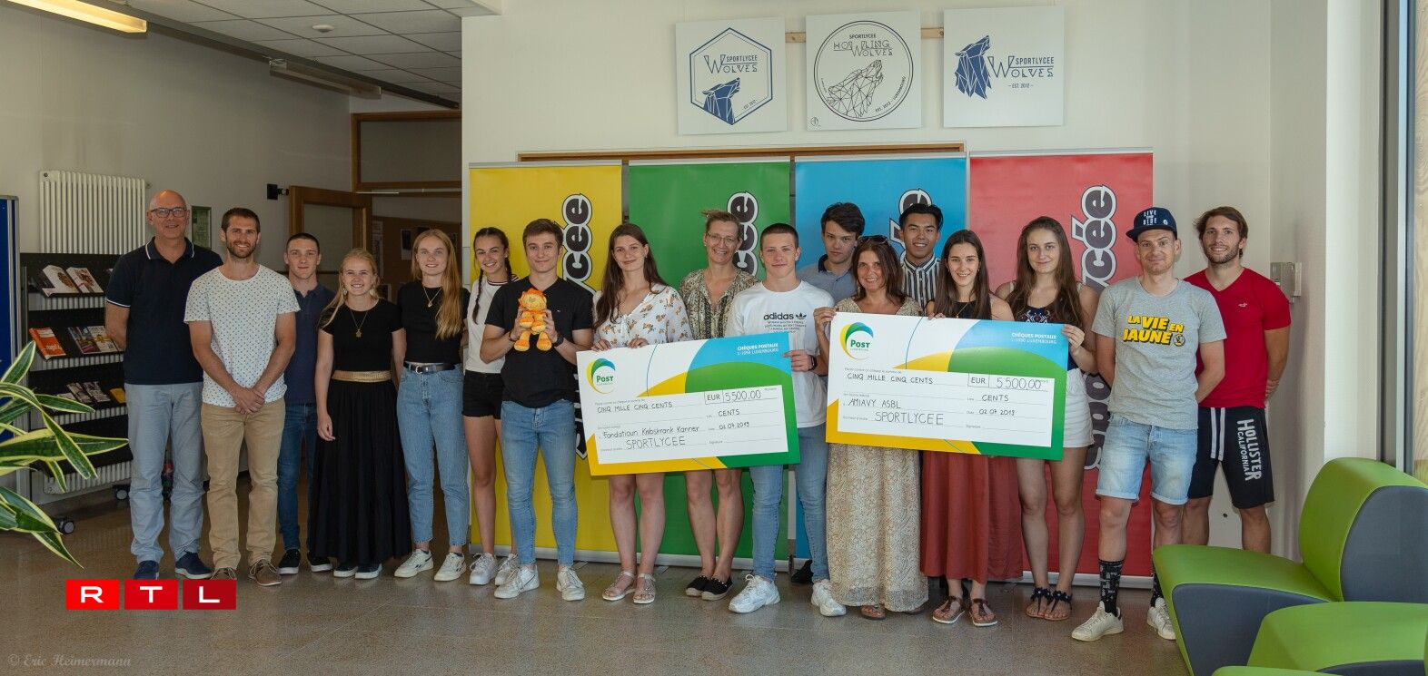 Leschten Dënschden, den 2. Juli war am Sportlycée eng Remise de Chèque. Am Kader vun der zweeter Editioun vun der Chrëschtfeier, déi am Dezember am Sportlycée vum Sport + organiséiert gouf, war en Total vun 11.000 Euro gesammelt ginn, déi direkt un zwou Associatioune gespent goufen (Amiavy Asbl a Fondatioun Kriibskrank Kanner). Mir soe jidderengem Merci, dee matgehollef huet an zu dësem Montant bäigedroen huet.