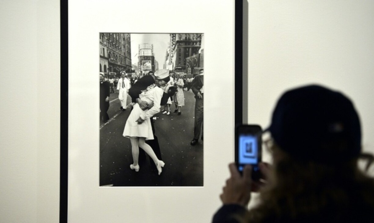 D'Police geet dovun aus, dass d'Figur e Méindeg beschmiert gouf, knapp een Dag nodeems de Matrous George Mendonsa op der berühmter Foto am Alter vu 95 Joer gestuerwen ass. Déi berühmten Zeen hat de Fotograd Alfred Eisenstaedt de 14. August 1945 fir d'Zäitschrëft "Life" geknipst.
