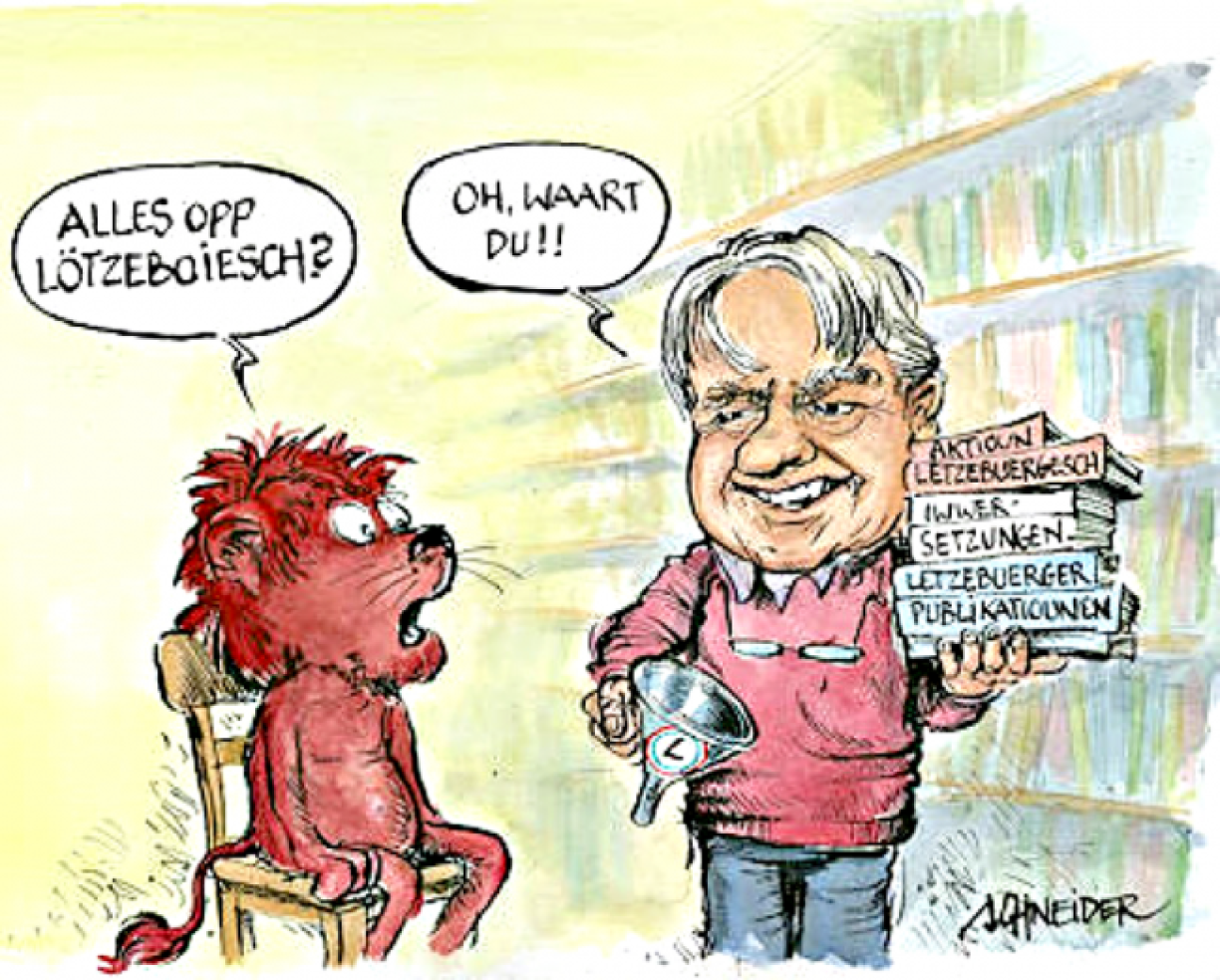 "Eescht a spaasseg Gedichtes mat e sëllechen onerwaarte Beispiller aus räicher Sprooch" presentéiert de Lex Roth am Kader vun de "Mardis littéraires" am Auditorium Henri Beck (2, rue Genistre) vun der Cité-Bibliothéik.