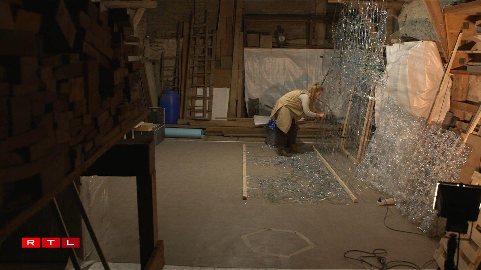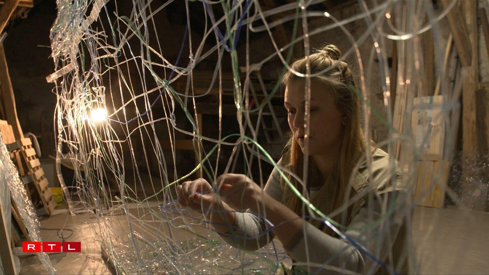 An hirem Atelier zu Recken verschafft si Fläschen, déi an der Natur bal 450 Joer brauchen, fir sech ze zersetzen. Hir Kreatiounen hannerfroen eis Relatioun zum Plastik-Offall - eis Konsumgesellschaft. Mat hire Skulpture gëtt d’Charlotte dësem Material eng nei Bedeitung, eng nei Form an en onerwaarte kënschtleresche Wäert.