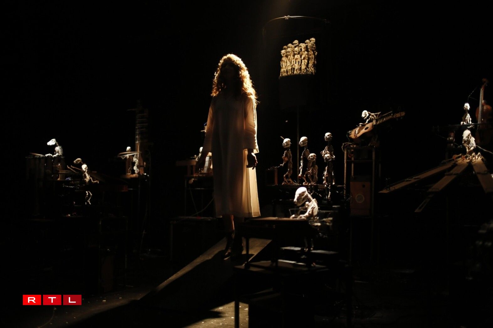 Besonnesch ass och, datt d’Sängerin den eenzege liewegen Acteur op der Bühn ass. Déi aner Museker sinn nämlech Skeletter, déi vu Computere gesteiert ginn a wärend der Show musizéieren.