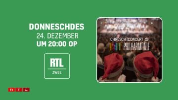 An och d’Kultur huet hir Plaz am Programm: op Hellegowend diffuséiere mer den Chrëschtconcert aus der Philharmonie, deen dëst Joer op eng ganz eenzegaarteg Aart a Weis iwwert d’Bün gaangen ass. De Replay vum Concert fannt Dir op der Plattform RTL Play.