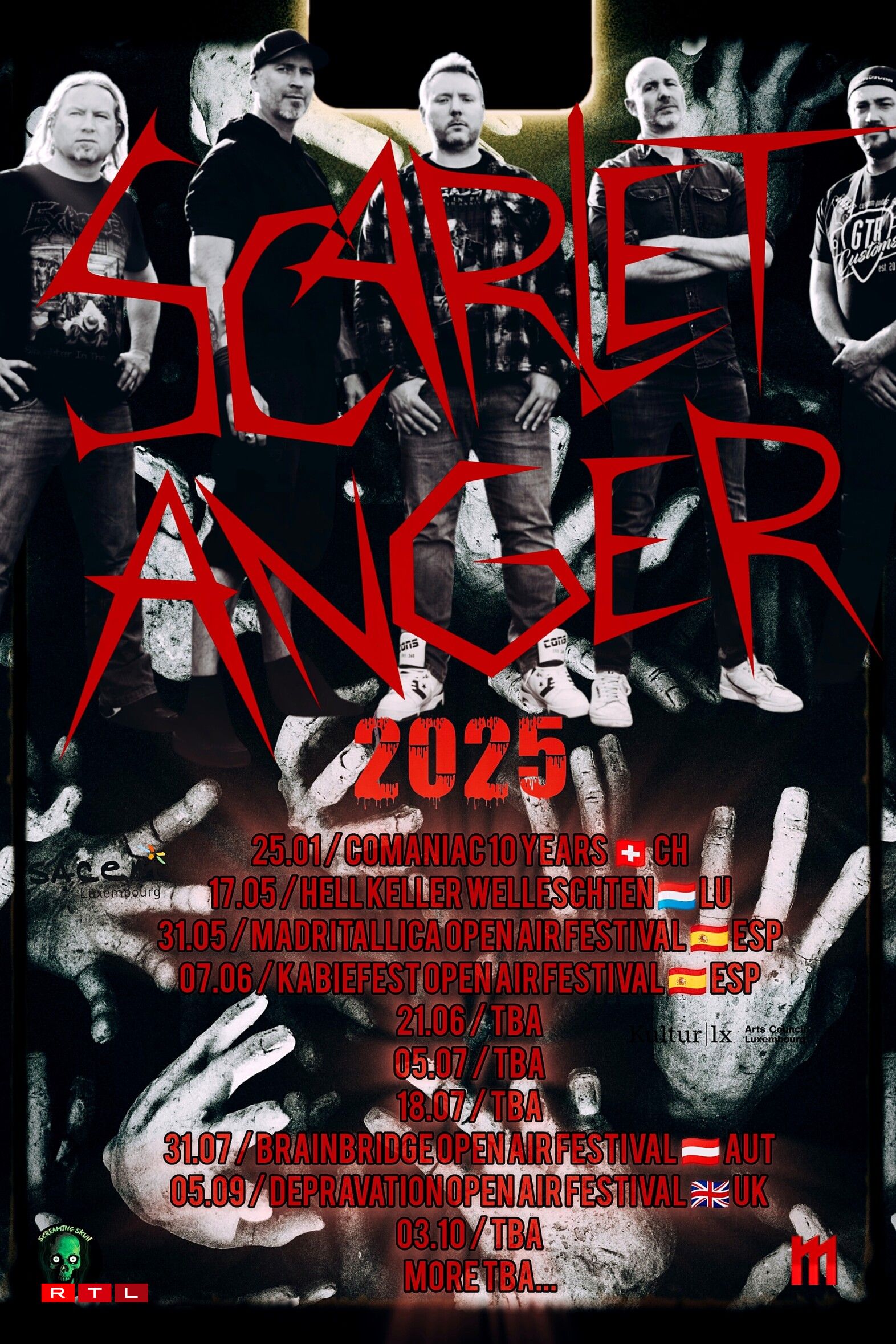 Dëst ass iwwregens schonn de mëttlerweil 3. Plackevertrag mat engem Label, ma dëst dierft awer definitiv déi gréissten Opportunitéit an deem Kader fir d’Band sinn. Dëst Joer wäert Scarlet Anger dann och op enger ganzer Partie Festivallen a Concerten an Europa spillen, ënnert anerem a Spuenien, der Schwäiz, Éisträich, Groussbritannien an Däitschland.