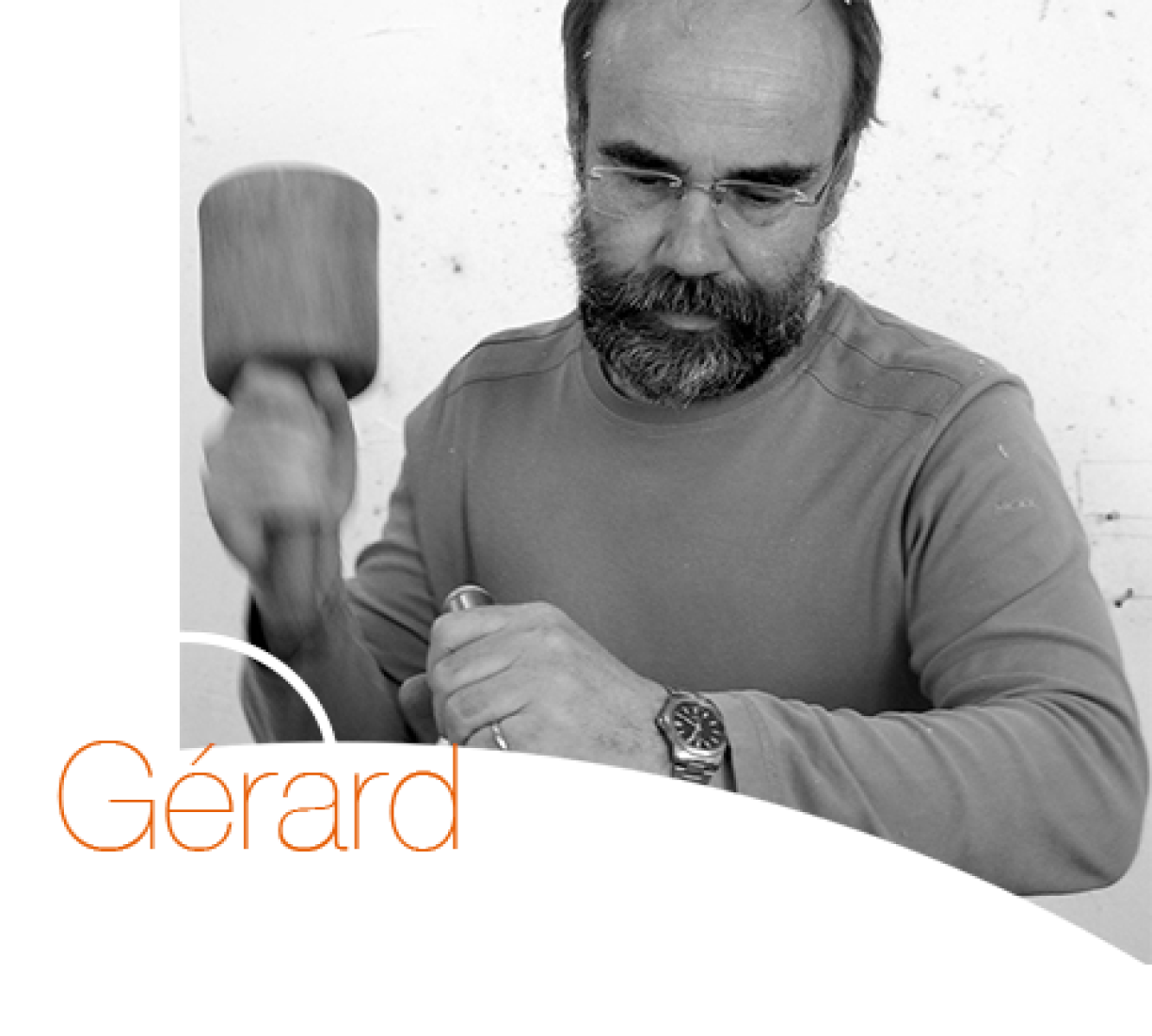 D’Material mat deem de Kënschler schafft, ass d’Holz. Seng artistesch Recherche konzentréiert sech dorobber wéi de kreative Prozess sech kann a muss mam Material ausenanersetzen a sech adaptéieren.