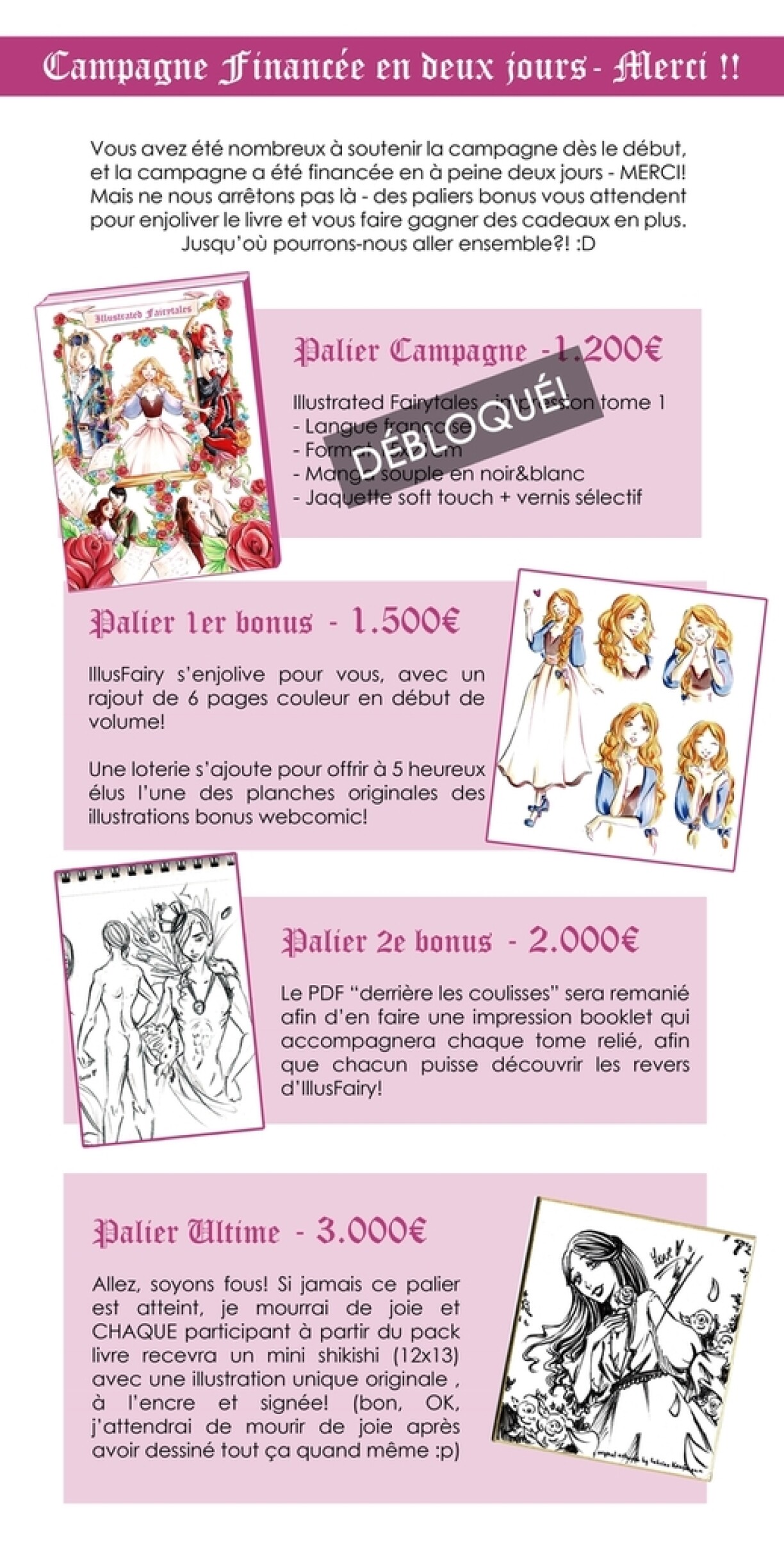 Am Buch "Illustrated Fairytales" geet et drëm, klassesch Märercher op Manga-Aart ze illustréieren; e klengen historeschen Abléck iwwer d'Mäerche soll et och derbäi ginn. Am Juli soll d'Buch erauskommen.
