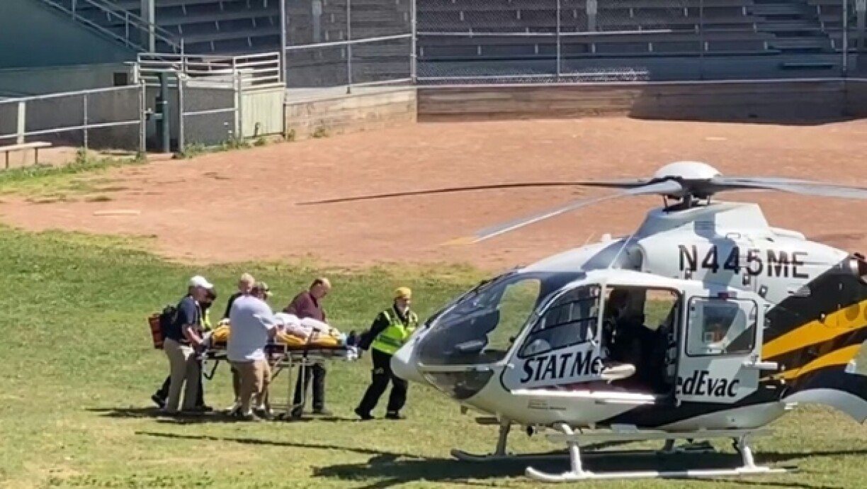 E Mann ass wärend senger Liesung zu Chautauqua am Bundesstaat New York op d'Bün gestiermt, huet hie geschloen an du mam Messer op hien agestach.