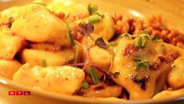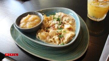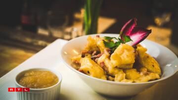 De Philippe Schersach, de Kach am Restaurant, betount dann och, wat fir eng Freed et ass, dass därmoosse vill Leit seng Kniddelen esou gär hunn, an dass sou dacks fir si ofgestëmmt gouf. Op Nofro hin, huet hien eis da verroden, dass virun allem d’Klassiker, also d’Kniddele mat Speck, an d’Kniddele mat Ram a Speck, sou wéi och d’Kniddele mat Wäinzoossiss déi kloer Favoritte bei de Cliente sinn. Wat och gutt leeft, wieren déi gratinéiert Kniddelen, dat souguer am Summer, wann et an sech scho bal ze waarm fir sou e schwéiert Iessen wier, mengt op alle Fall de Kach. Ma d’Leit géifen se einfach gären iessen...