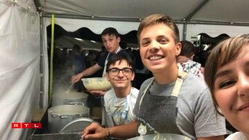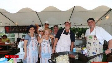 Zënter ronn 15 Joer ass een als Theaterveräin bei der Fête de la musique zu Keel dobäi. Ufanks huet ee gegrillt a Panescher gemaach, du koum op eemol d’Iddi, fir Kniddelen ze maachen, fir en Twist eranzebréngen. “D’Ingredienten hu jo net vill geännert, et si quasi déi selwecht wéi fir d’Panescher”, erzielt eis d’Regisseurin vun der Artistekëscht Josiane Becker, déi vun Ufank un dobäi ass. Deemools huet ee sech nach eng riseg grouss Pan misse léinen, fir d’Kniddelen dran ze broden, haut hätt ee mëttlerweil eng eegen. D’Leit goufe vun Ufank un duerch déi grouss Pann automatesch op de Stand opmierksam gemaach an ugezunn, de Succès war séier garantéiert. Mëttlerweil mécht d’Artistekëscht tëscht 90 an 100 Kilo Kniddelen, wuelgemierkt an zwee Deeg. Hei muss natierlech alles am Virfeld preparéiert ginn. Mat Ram a Speck a just mat Ram fir d’Vegetarier, dat sinn déi zwou Varianten, déi ee kritt, optional dann nach mat Äppelkompott dobäi oder mat Maggie, ebe bal wéi doheem.