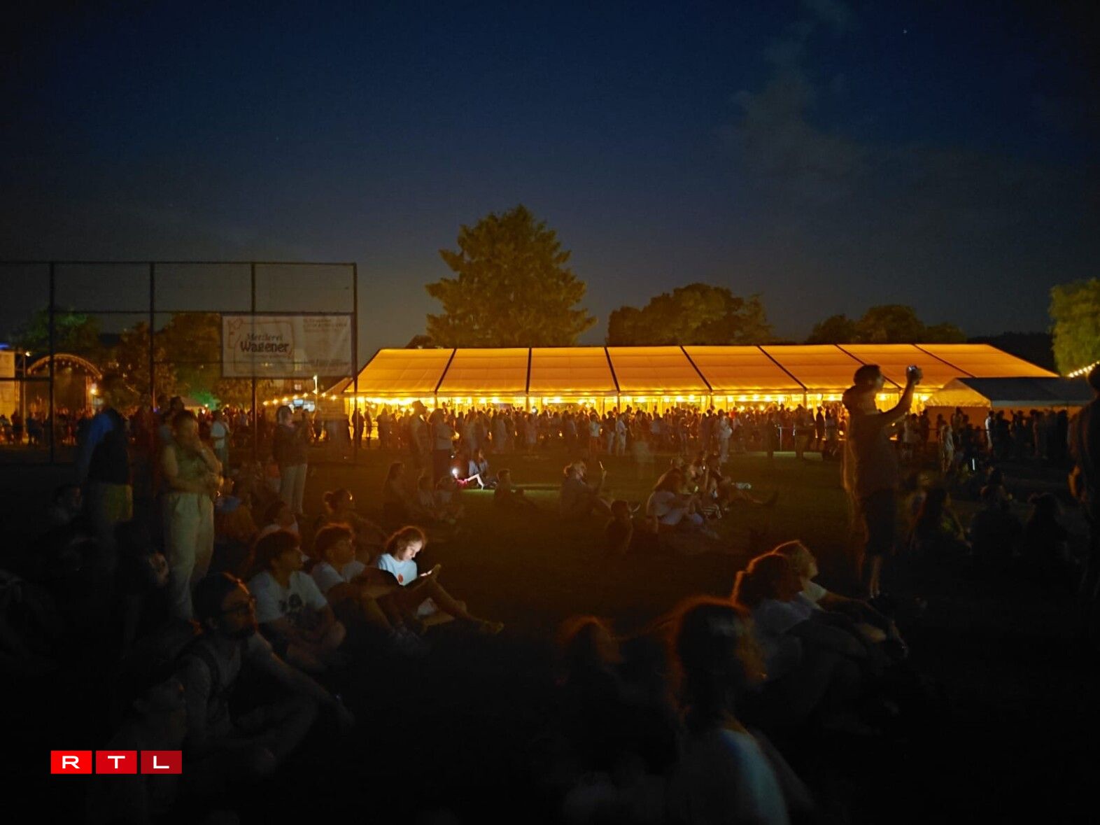 Um Virowend vun Nationalfeierdag gouf et an der Uelzechtdall-Gemeng net nëmme Musek an z’iessen an ze drénken, mee ëm 23 Auer stoungen d’Leit prett um Futtballsterrain, fir an den Himmel iwwert dem Sportkomplex ze kucken: No an no sinn an der Däischtert lauter Dronen an den Nationalfaarwen opgedaucht an hunn d’Leit mat op eng Rees duerch d’Geschicht vu Walfer geholl, déi och nach iwwer Mikro erkläert gouf.