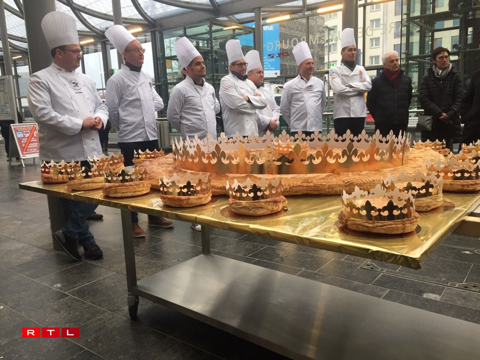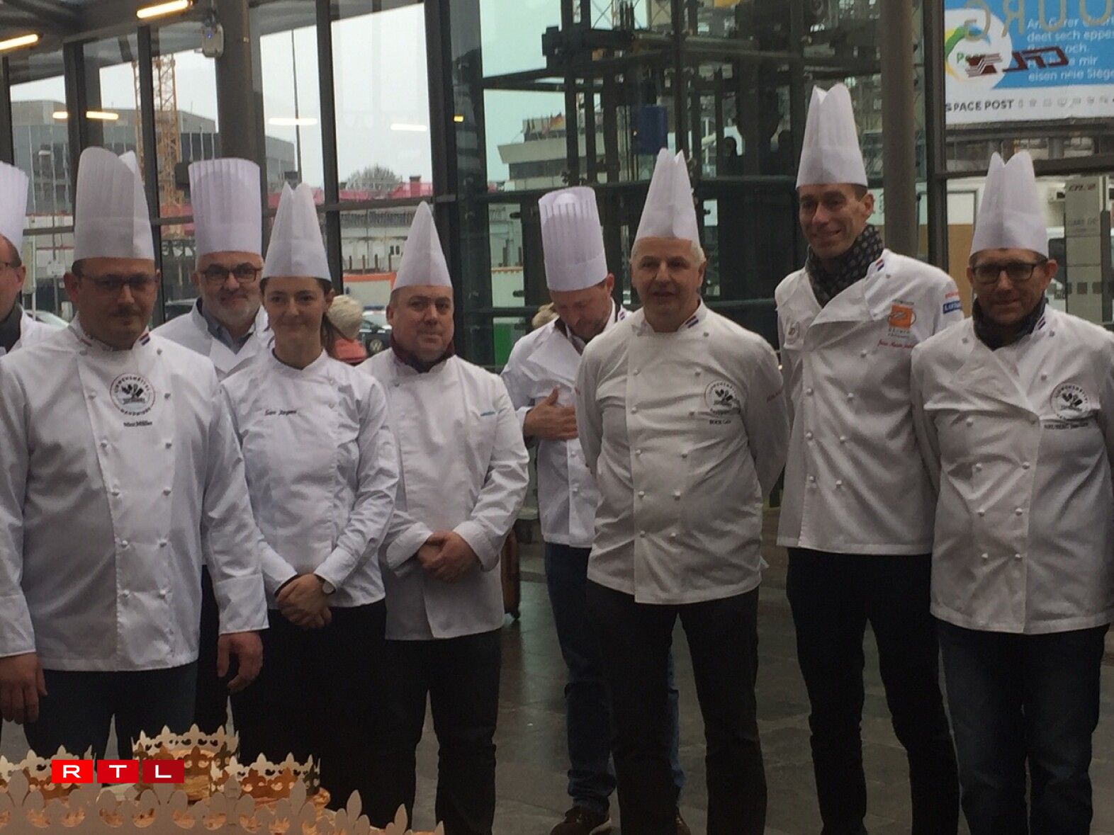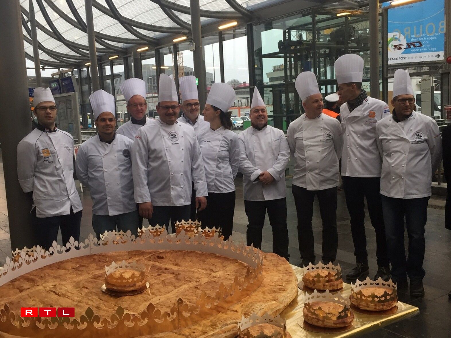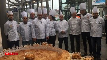 Ugangs gouf an d’Veianer Schlass invitéiert, mëttlerweil gëtt dëse Kuch virun der Stater Gare opgeschnidden.