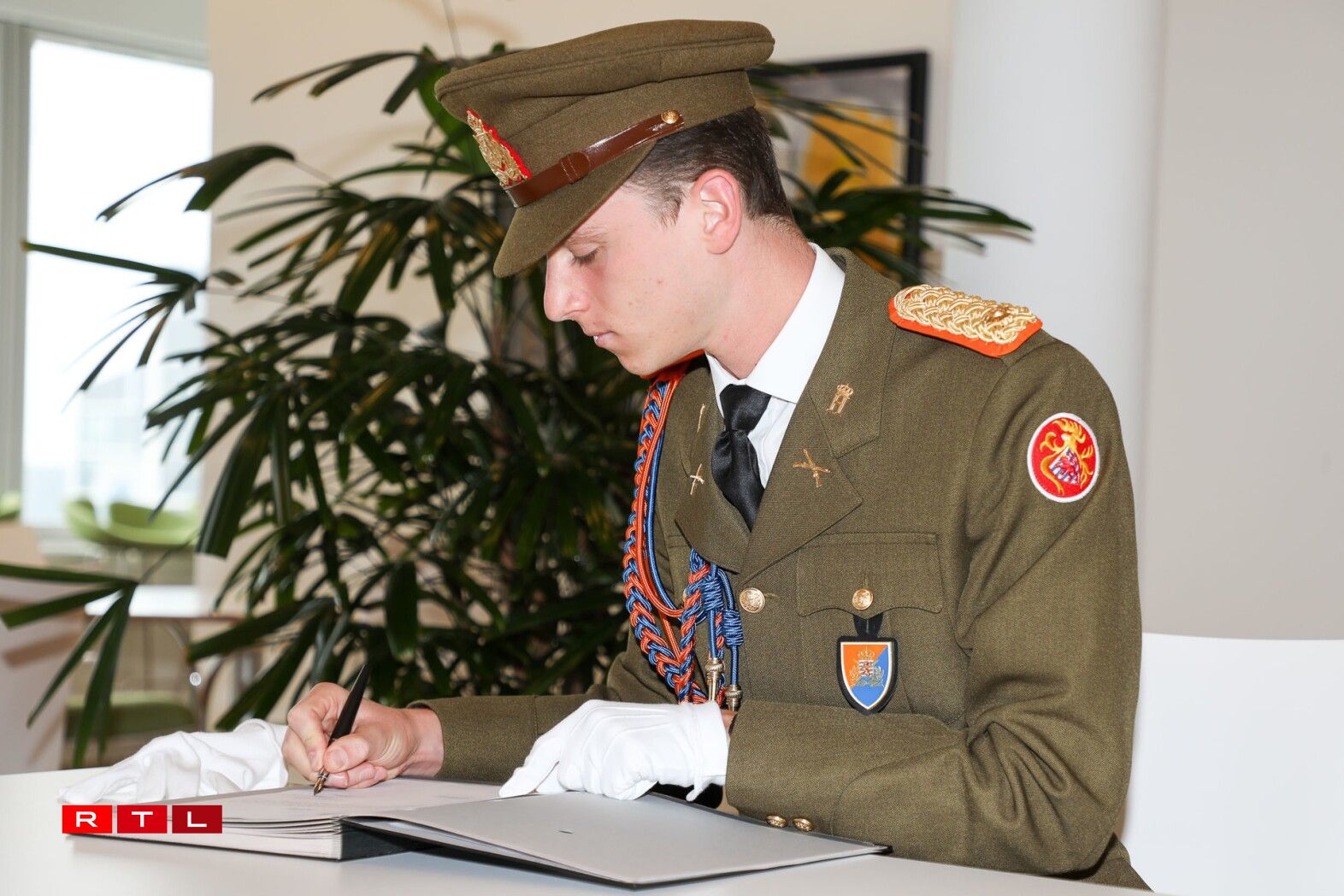 De 25. August gouf de Fils vum Prënz Guillaume a Präsens vun der Ierfgroussherzoglecher Koppel a senger Famill als Offizéier an der Lëtzebuerger Arméi vereedegt.