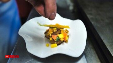Dat heescht a senger gosse Pan fënnt een dann och emol geréischtert Hieselnëss an Emmentaler mat brongem Jus aus Topinambur, dat Ganzt placéiert op enger Omlette. Wéi ee gesäit, e Plat fir méi extravagant Genéisser, déi den néidege Portmonni matbréngen. De Plat wéi “topinambour-truffe noire mélanosporum” mat “cerfeuil tubéreux épice” mat Äerdbierjus steet dann och fir 350 Euro op der Menüskaart.