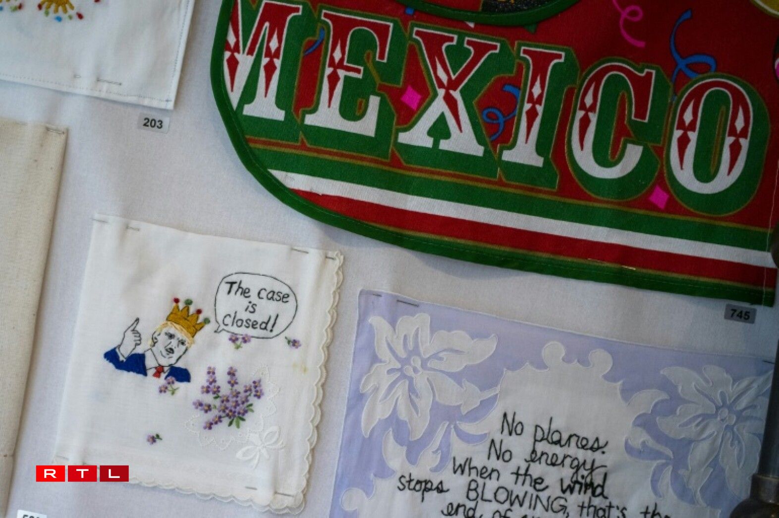 “Such a nasty woman”, “Crooked Hillary”, “Grab’em by the pussy”. Dat sinn nëmmen e puer vu villen Zitater, woufir den Trump scho Kritik kritt huet. D’Amerikanerin Diana Weymar huet eng Kollektioun vu ronn 900 vun dësen Zitater, déi all op Stoff gestéckt goufen.