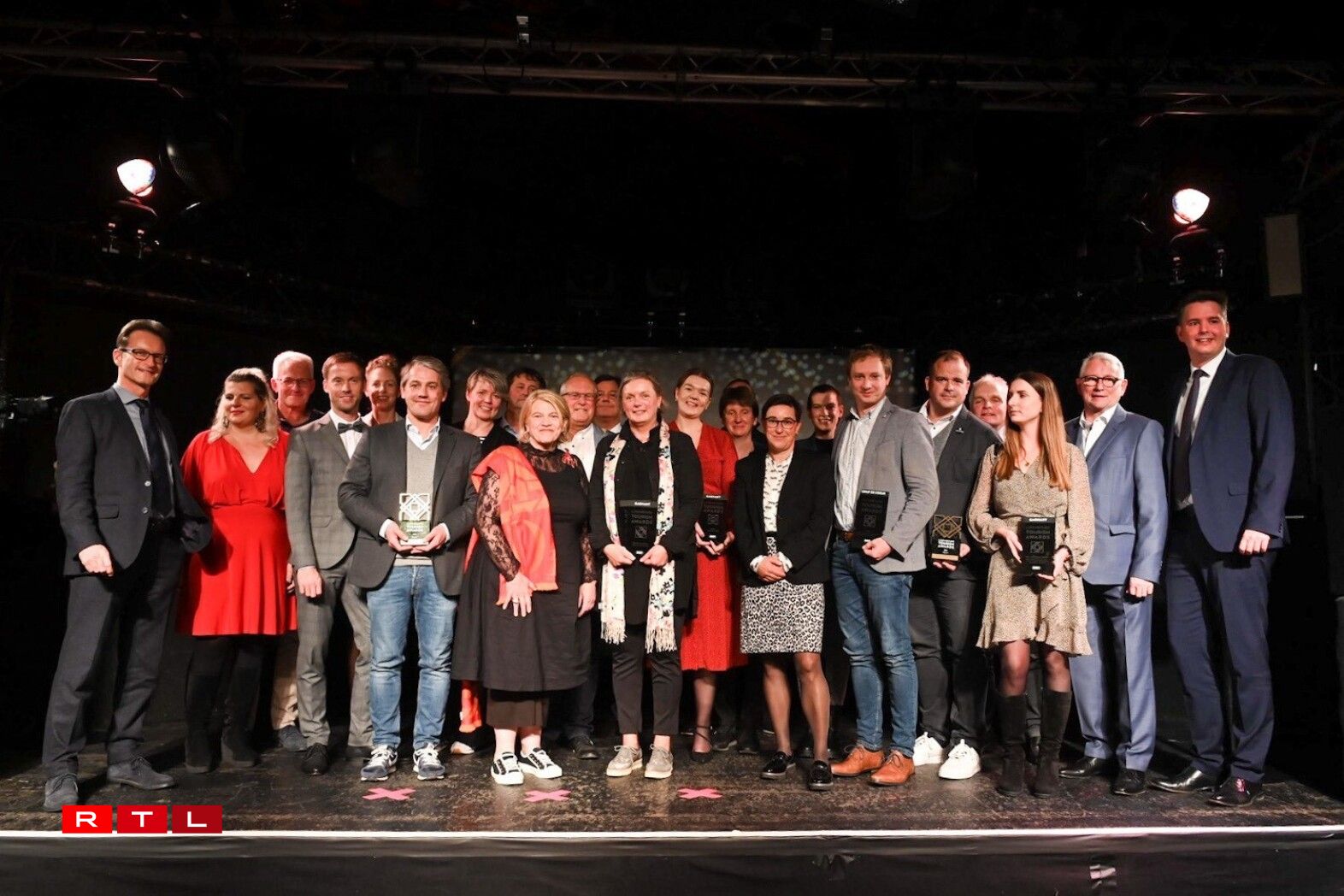 Wéi et heescht, goufen d’Laureate wéinst hirer Dynamik, Passioun a Kreativitéit an hirem Beruff am Kader vum Tourissem ausgezeechent.D’Minettmetropol Esch krut an direkt 3 Kategorië Präisser. Engersäits d’Stad Esch als “commune méritante”, dann d’Escher Bamhaiser um Gaalgebierg an och den Escher Déierepark, wou op zwee Hektar eng 150 Déiere liewen.An der Kategorie Hotelle gouf de Graace vun de Bridder Graas zu Bouneweg ausgezeechent, bei de Restaurante war et de renovéierten Airfield um Findel, deen e Präis krut a bei de Campinge krut den Tourismus-Award de Camping Park zu Beefort, wou een a siwen Holztippie ka schlofen, eng Première fir Lëtzebuerger Campingen.Och zwee Internetsitte kruten en Tourismuspräis: Dëst ass de Site explore.lu vum Georges Krack, dee mat sengem Mini-Bus déi bescht Miseler Cruen a Wënzer exploréiere léisst, grad wéi d’APP sightseeing.lu, wourop 120 verschidden touristesch Sitte visualiséiert sinn, sou datt den Tourist säin Trip individuell kann zesummestellen. De Site vum Georges Krack krut iwwerdeems och de Publikumspräis.An der Kategorie “Infrastruktur” goung de Präis un den touristeschen Zenter beim Iechternacher Séi, dee fir seng breet Offer u sportlechen Aktivitéiten ausgezeechent gouf.D’Tourism-Awards goufe vum Tourismusminister Lex Delles verginn.