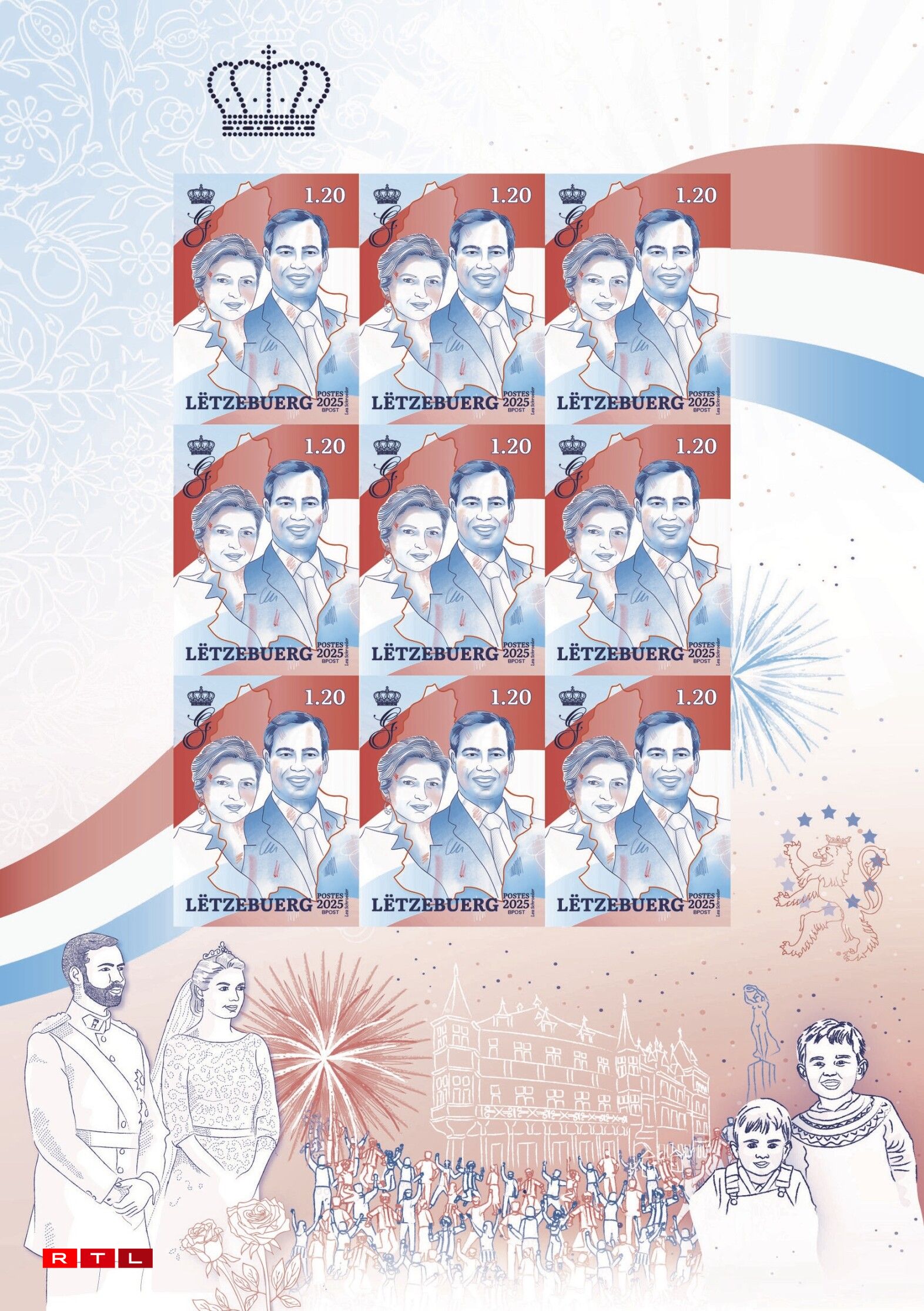 *Den Timberblock huet een Tirage vun 30.000 Exemplairen an den Timber vun der zukünfteger groussherzoglecher Koppel gëtt et 50.400 Mol. Vum 3. Oktober u kritt ee se an alleguer den Espace POSTen, Postbüroen an online op www.postphilately.lu.