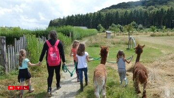 Galloway-Ranner, Zwerch-Geessen an Alpakae sinn op dësem Bauerenhaff zu Huewel doheem. Dir kënnt un enger Hellewull vun Aktivitéiten deelhuelen, d’Déiere fidderen, d’Ställ ausmëschten oder op en Trekking-Tour mam “Wonder”, “Eldorado” oder “Charlie Brown” goen. Dat sinn 3 vun hire 7 Alpakaen.