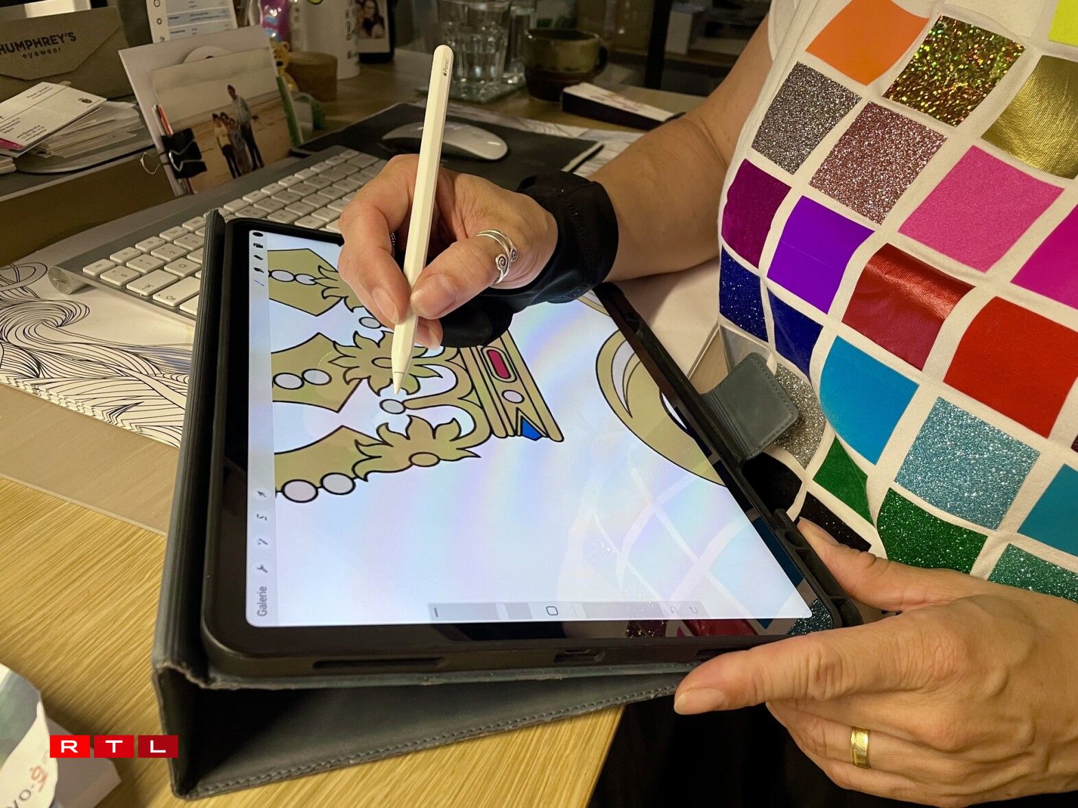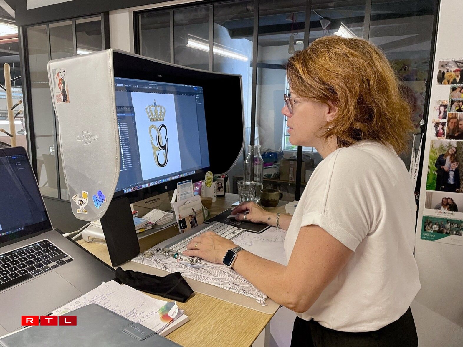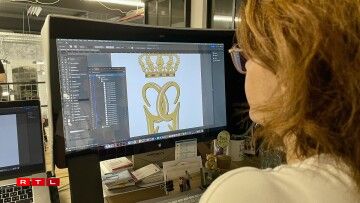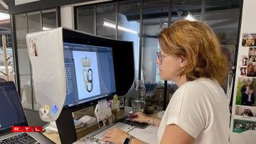 Entworf gouf dee Monogramm vun enger lëtzebuergescher Grafik-Designerin. Mir besichen d’Yolande Koster-Kaiser op hirer Aarbechtsplaz, do wou si déi lescht Méint intensiv um neie Monogramm fir den zukünftege Grand-Duc Guillaume geschafft huet. Am Dezember huet si sech an d’Recherchë gestierzt, sech al Monogrammen ugekuckt an analyséiert a si huet sech natierlech och mam Client zesummegesat - am Palais!