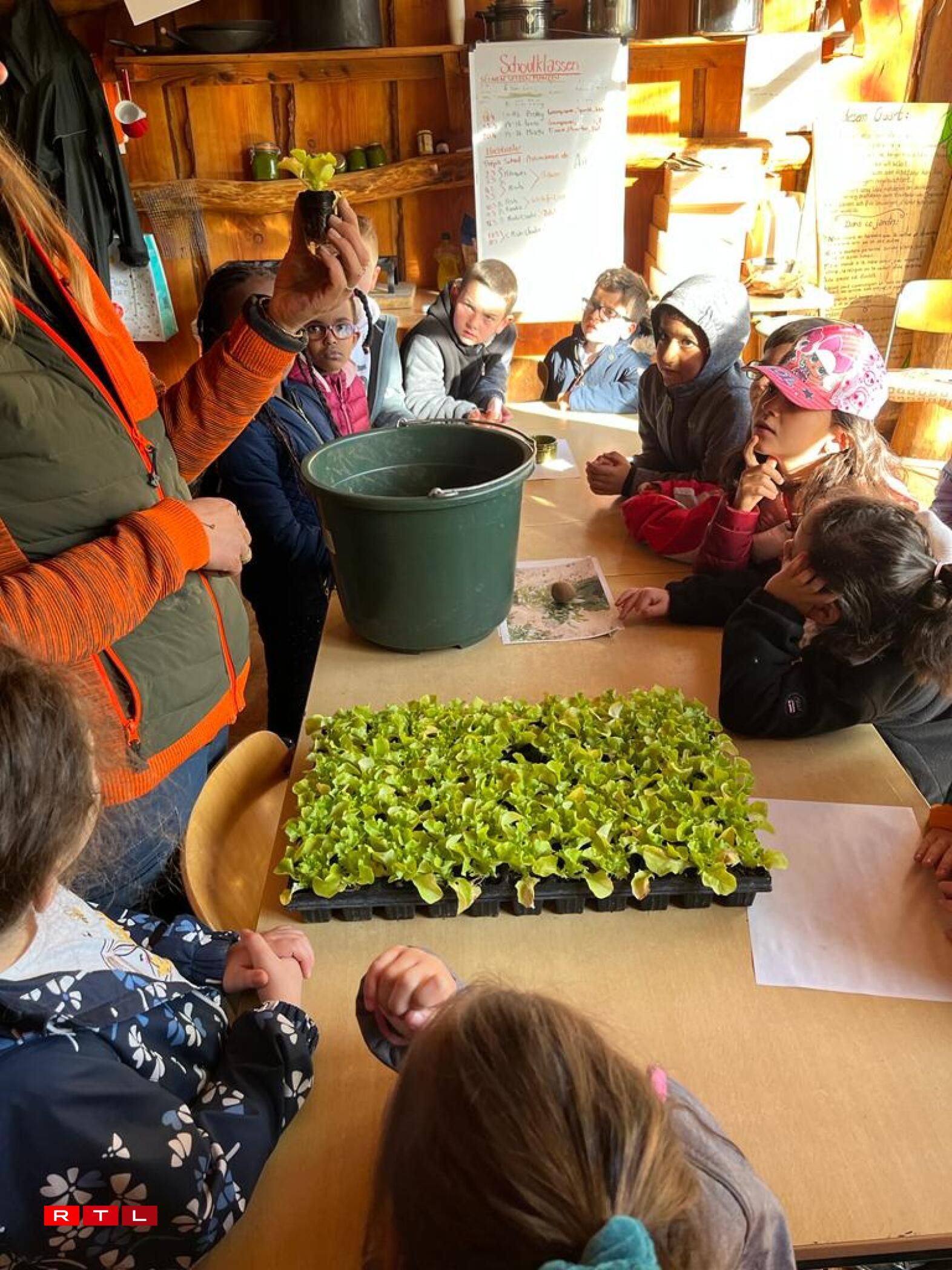 D’Haaptzil vum Gaart ass eigentlech, dass mer zesumme mat de Schoulklasse schaffen, iwwer d’Thema Liewensmëttel. Wou kommen eis Liewensmëttel hier? Wat brauche se, fir kënnen ze wuessen? Mä et geet och dorëm, ze verstoen, wéi se schmaachen a wat een domat alles maache kann. Duerfir spillt d’Kichen an deem Ganzen eng grouss Roll. Meeschtens, wann d’Klasse kommen, komme si net nëmmen ee Mol, mä iwwert d’ganz Saison. Si kommen ëmmer erëm no hire Saache kucken, si kommen netzen, Onkraut rappen... Da baue mer och verschidde Saachen, ewéi zum Beispill Hochbeeter. An zum Schluss, wa mer an der Erntezäit sinn, da kache mer dat Ganzt a mir iessen dat zesummen. Esou kann een d’Relatioun zum Iessen nees hierstellen, well dacks gëtt net méi gewosst, wat wiisst zu wéi enger Joreszäit, an et mengt een ëmmer, d’Äerdbiere wären egal wéini am Joer prett. Dat heescht, et ass och e bëssen, fir dat Verstees-de-mech erëmzekréien, dass net ëmmer alles verfügbar ass dat ganzt Joer iwwer an dass esou, wéi et am Supermarché duergestallt gëtt, eigentlech déi onnatierlech Aart a Weis ass.