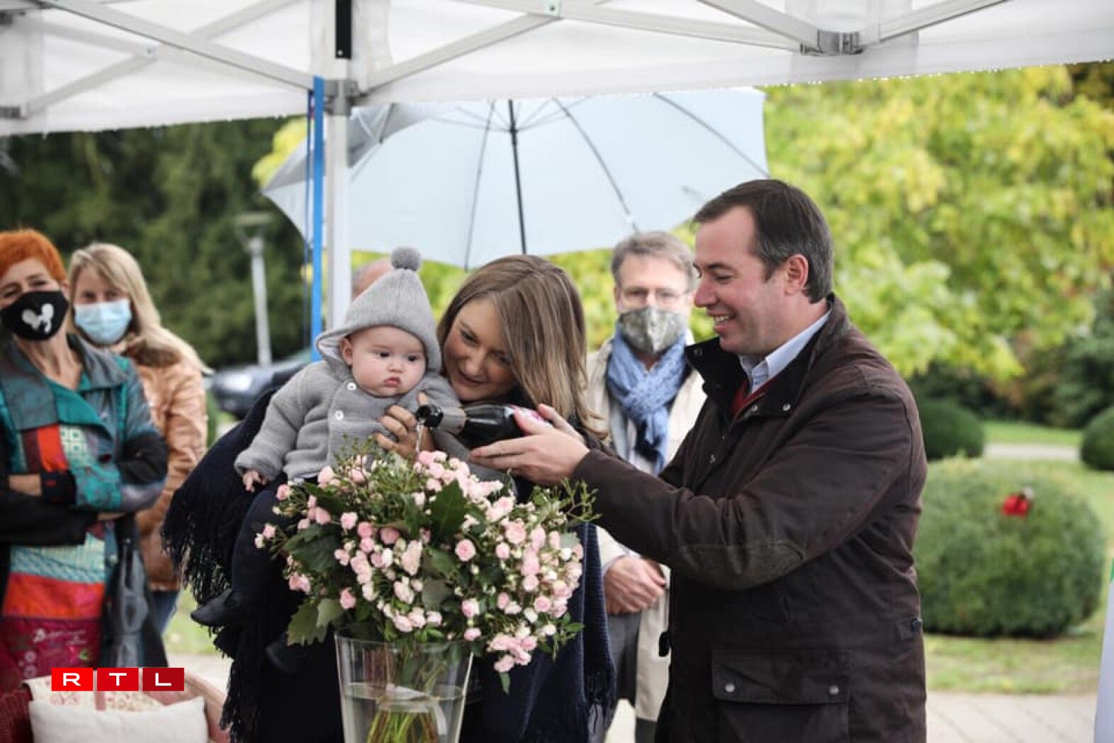 Zanter de kleng Prënz am Mee op d’Welt komm ass, huet ee just wéineg vun him ze gesi kritt. No der Kanddaf virun 3 Wochen bei herrlechem Wieder, war et den éischten offizielle Rendez-vous fir de Charles Jean Philippe Joseph Marie Guillaume. Agekuschelt an enger groer Jackette mat Bommelmutz konnt een de Fils vun der Ierfgroussherzoglech Koppel dës Kéier beim Rousegaart vum Schlass zu Mënsbech bewonneren.