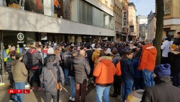 Geplangt war eigentlech, datt déi éischt Clienten, déi do sinn, och als éischt kafen dierfen. Aus Sécherheetsgrënn virun engem Undrang u Mënschemassen hu sech déi Responsabel vum Buttek awer entscheet, eng sougenannt “Raffle” duerchzeféieren. D’Leit konnte sech bis Freideg op der Plaz aschreiwen, fir un der Auslousung vun de ronn 150 puer Schong deelzehuelen. Déi glécklech Gewënner waren domat zum Kaf vun de Sneaker berechtegt. Dës ginn aktuell am Internet scho fir iwwer 1.000 Euro gehandelt.