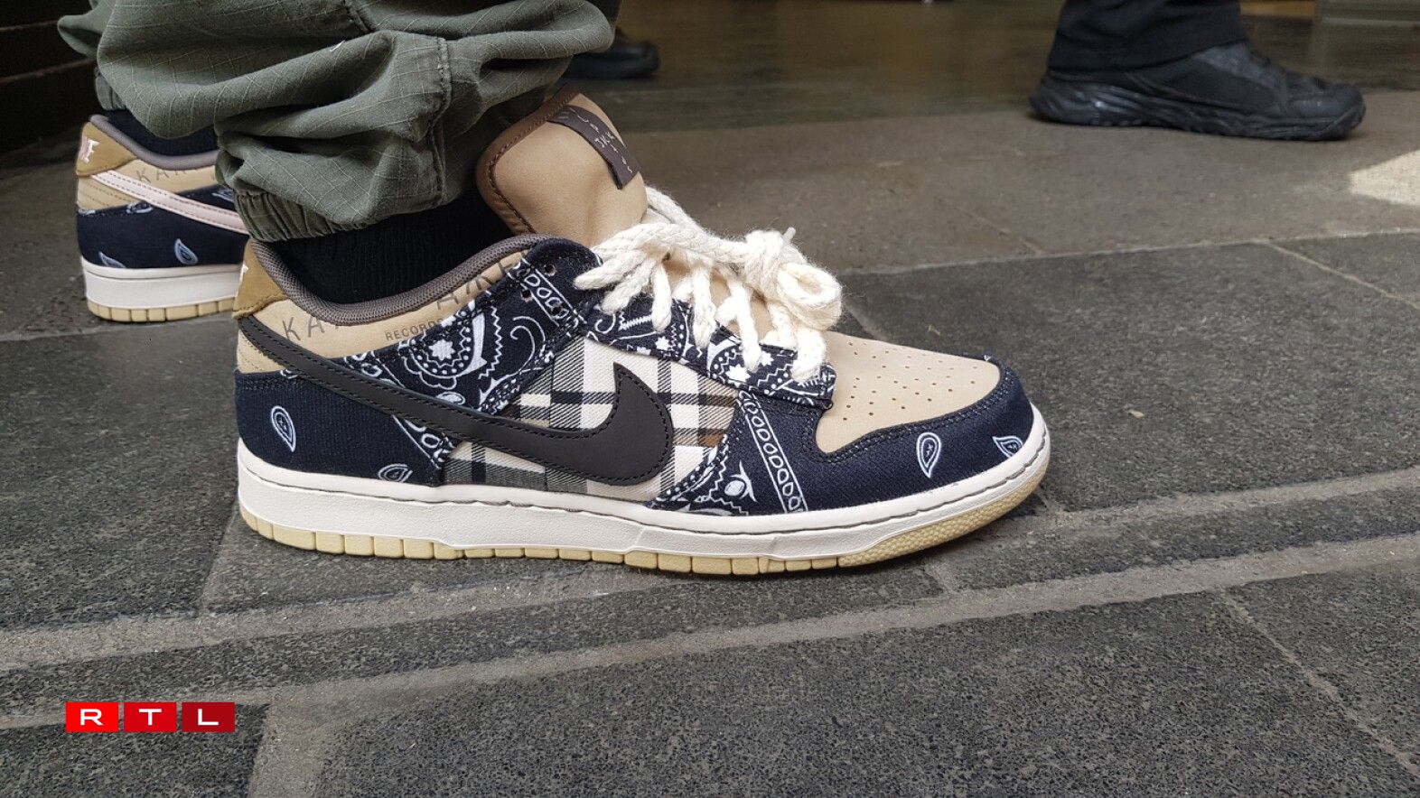 Wien net séier genuch war, fir d’Schong am Travis Scott a sengem Onlineshop ze ergatteren, misst sech bis e Samschdeg gedëllegen. “Cactus Jack Nike SB Dunk Low” heesche se an hunn e Präis vu ronn 150 Dollar. D’Sneaker goufen nëmmen a vereenzelte Geschäfter, déi vun Nike selwer erausgesicht goufen, ugebueden.