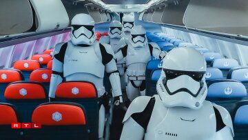 Star Wars a United Airlines hätten dat selwecht Zil, nämlech Mënschen op der ganzer Welt mateneen ze verbannen, sou de Vizepresident Mark Krolick vun der Fluchgesellschaft. Och wann deen een oder anere béise Stormtrooper u Bord war, sinn d’Passagéier alleguerten heel op hiren Destinatiounen ukomm.
