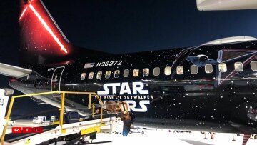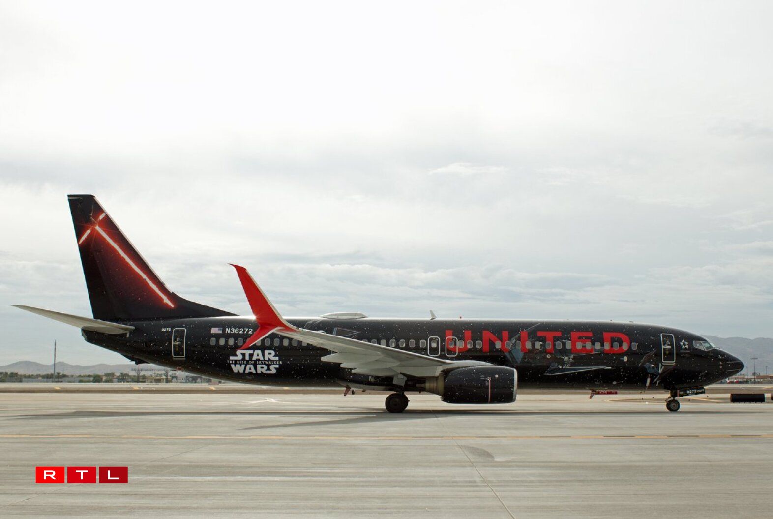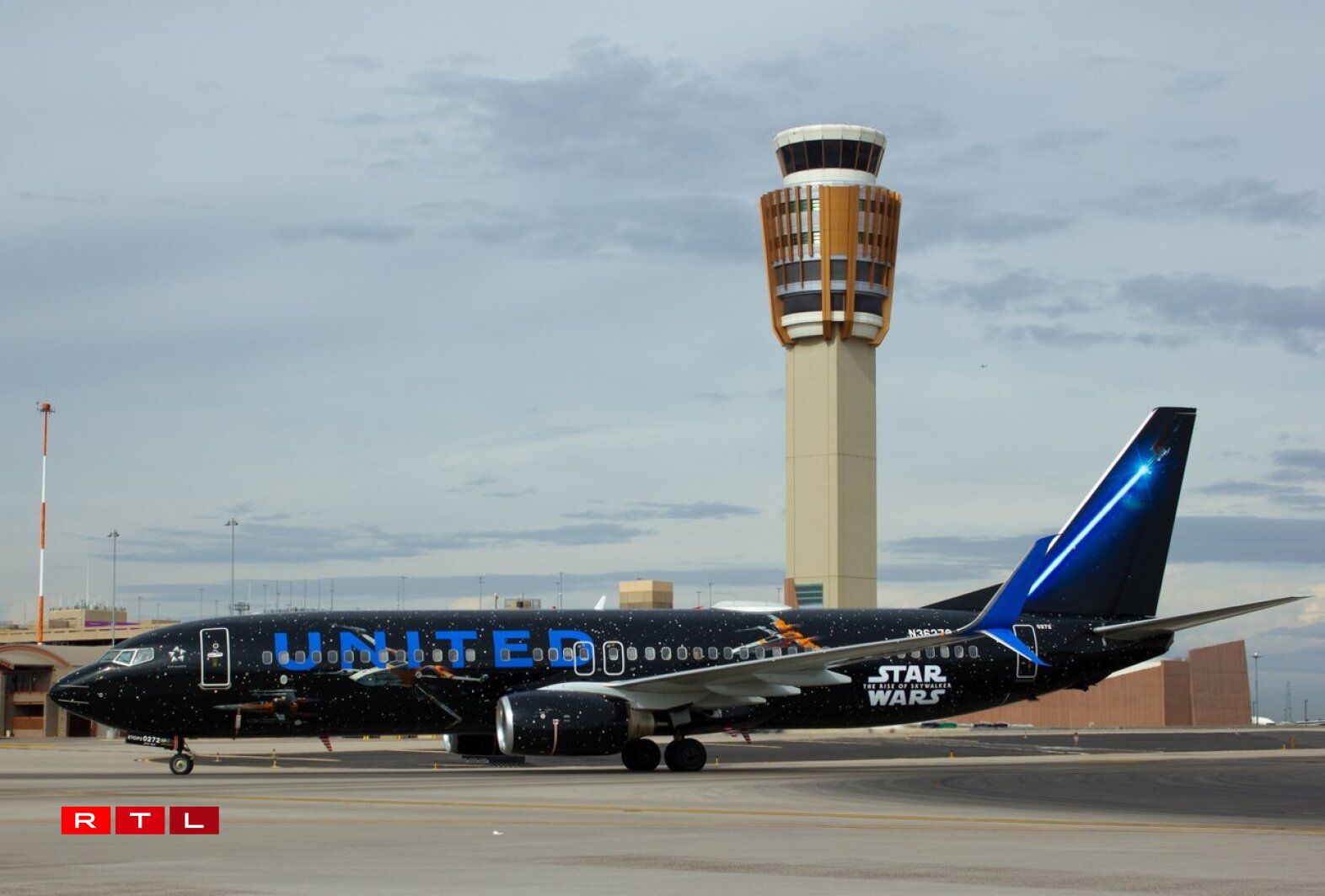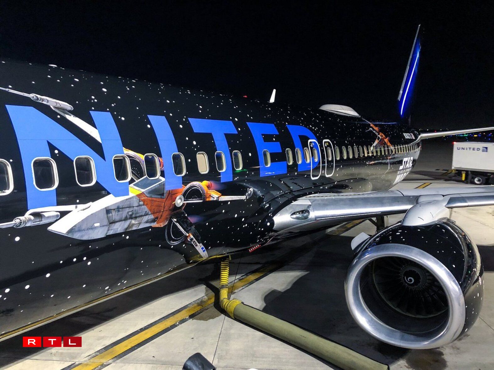 Passend zur Premiere vun “The Rise of Skywalker”, dem néngte Film aus der Saga, huet United Airlines e Fliger designe gelooss, dee bei der Fan-Communautéit weltwäit fir Begeeschterung gesuergt huet. Déi éischte Kéier ass d’Maschinn Ufank November geflunn, vu Houston an Texas bis op Orlando a Florida.