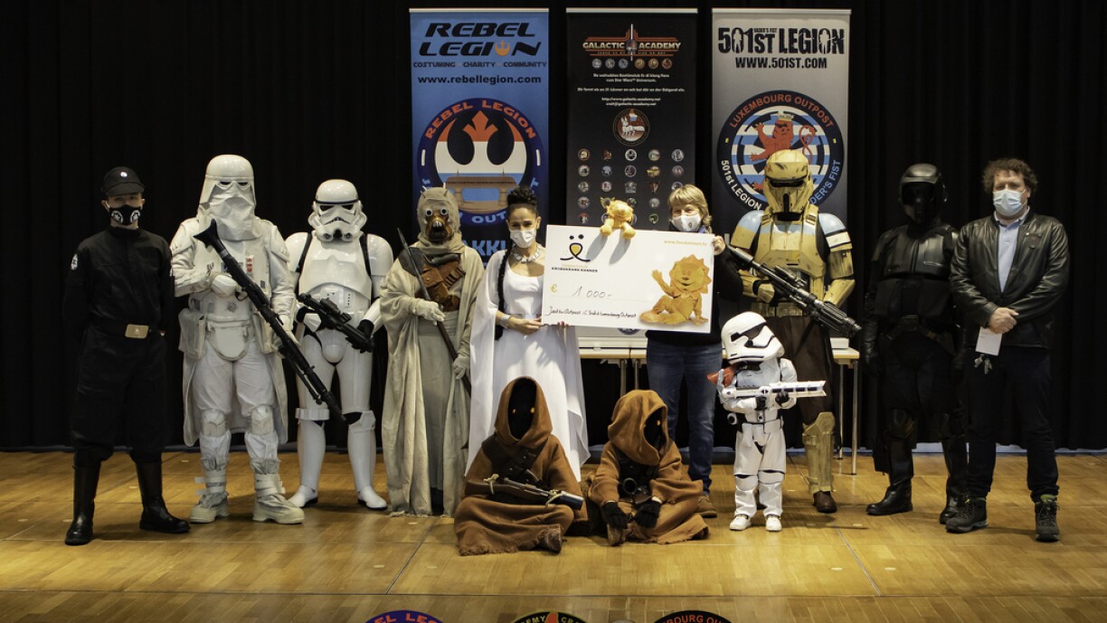 La collecte de dons en période de pandémie n’est pas une chose facile. Tout rassemblement permettant de solliciter des dons est soit interdit, soit n’est possible que sous des mesures sanitaires très strictes. Peut-être grâce à la “Force”, les deux fan-clubs Star Wars “Jakku Outpost” et “501st Luxembourg Outpost” ont réussi à collecter des dons pour un montant de 2 600 euros. Trois associations ont bénéficié de ce don commun. La Fondatioun Kriibskrank Kanner a reçu un chèque de 1.000.-€.