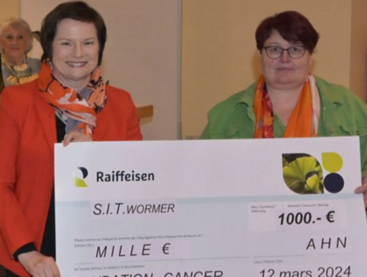 De Syndicat d’Initiative et de tourisme vun der Gemeng Wuermer huet sech dozou decidéiert, den Engagement vun der Fondation Cancer ze ënnerstëtzen. Am Kader vun der Generalversammlung vum Syndicat, a Präsenz vum Här Minister fir Tourismus Lex Delles, gouf dem Lucienne Thommes, Direktesch vun der Fondation Cancer, e Scheck vun 1.000 € iwwerreecht. Verschidde Memberen aus dem Comité hunn op ee Cadeau fir hiren Abschid verzicht an hunn amplaz een Don gemaach. Duerfir ass decidéiert ginn, e gemeinsame Scheck ze maachen an deen der Fondation Cancer zoukommen ze loossen.