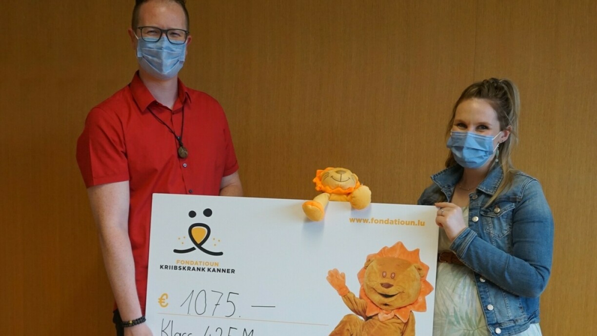 Ënnerhalb vun 2 Wochen ass d’Lidd ganzer 170 Mol verkaf ginn an et sinn net manner wéi 2.275 Euro zesummekomm. D’Schüler aus der Klass 4.2 vun Mamer konnt ganz stolz ee Scheck vun 1.075 € un d’Fondatioun Kriibskrank Kanner iwwerreechen. www.fondatioun.lu