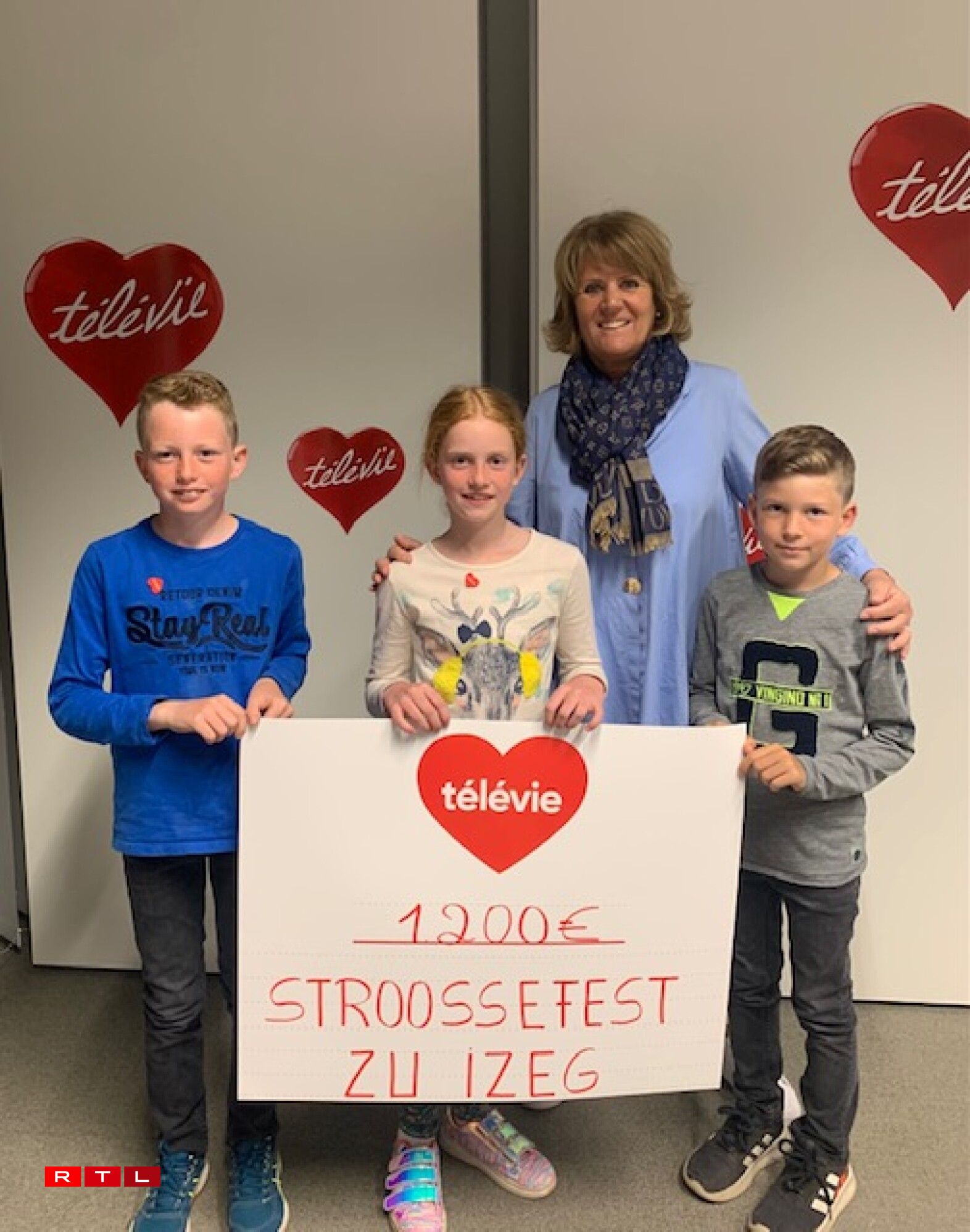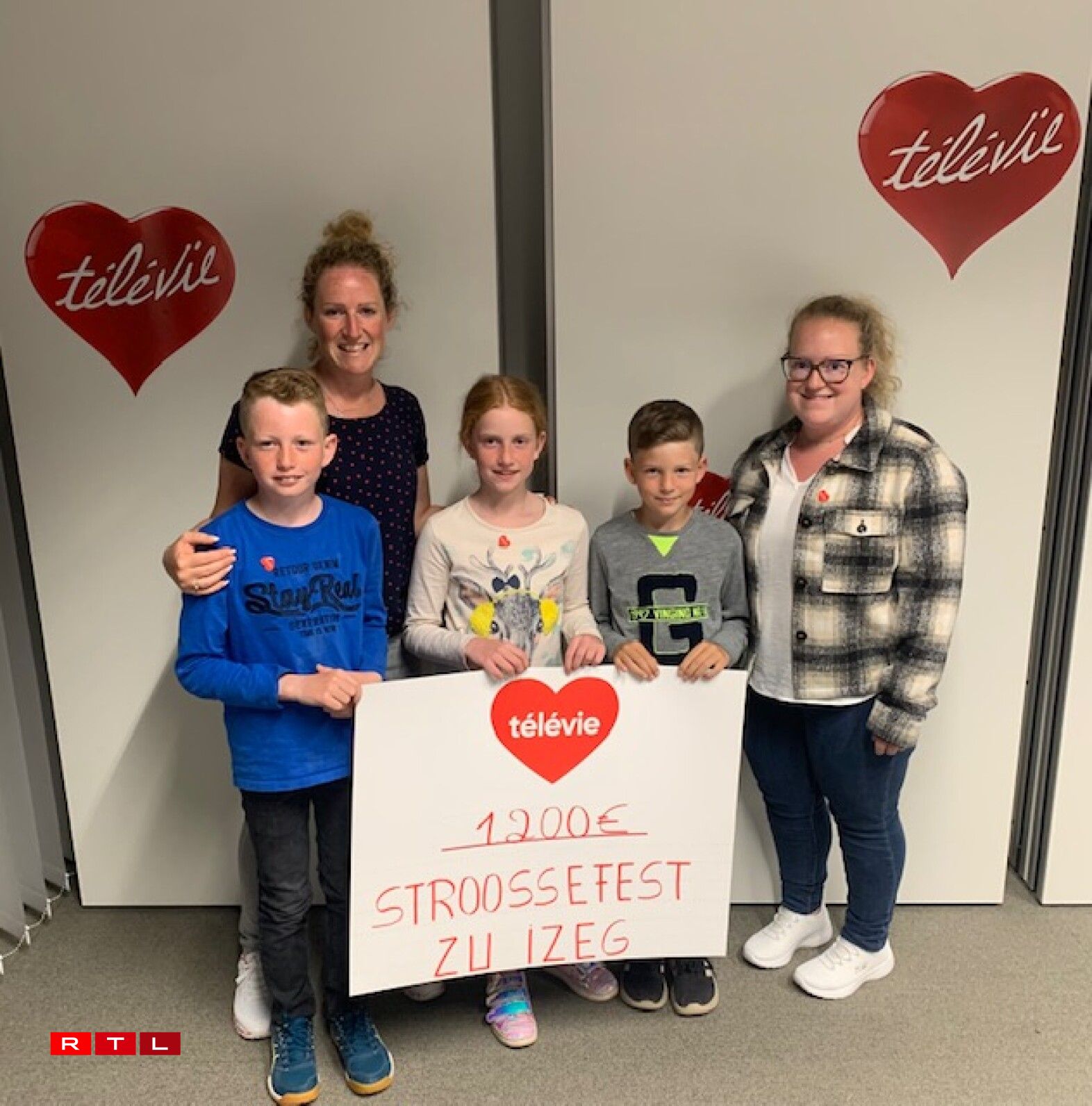 D'Laly, seng Bridder, seng Frënn a Frëndinnen hu mam Verkaf vu Muffinnen, Panescher, Eisekuchen a Gedrénks op hirem Stroossefest mat Kannerconcert déi super Zomm vun 1.200 Euro zesummegesammelt an un den Télévie gespent.