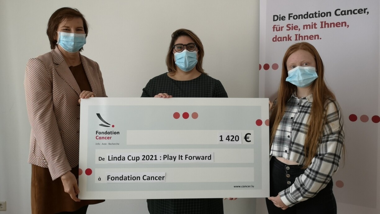 Zesummen hunn si eng Zomm vun 1 420 € fir d’Fondation Cancer konnte sammelen. D’Lucienne Thommes, Direktesch vun der Fondation Cancer, huet allen Bedeelegten häerzlech Merci gesot fir hir Ënnerstëtzung. Dës Solidaritéits-Aktiounen erméiglechen der Fondation Cancer hir Missioune weiderhin ze realiséieren: Informéieren, hëllefen an d’Fuerschung ënnerstëtzen.