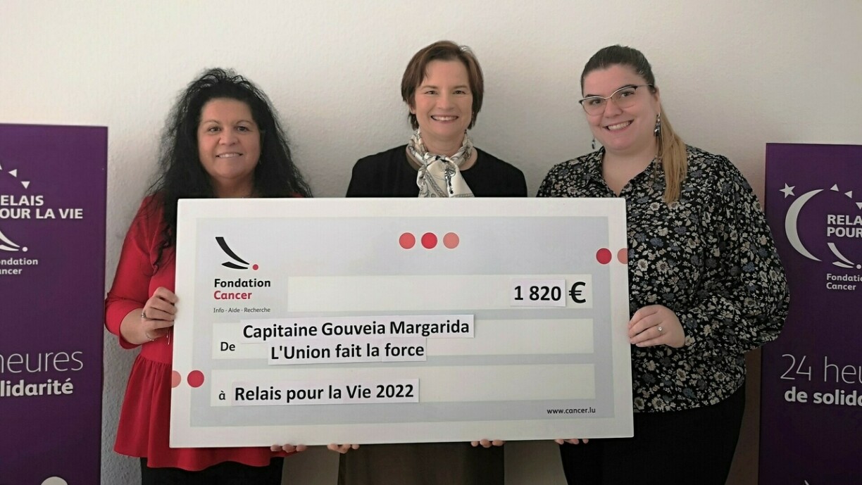 Dëst Joer kann der Madamm Goveia Margarida an hirem Meedchen hir Ekipp L’Union fait la force leider net beim Relais pour la Vie 2022 deelhuelen, awer si ënnerstëtzen d’Fondation Cancer trotzdeem weider!