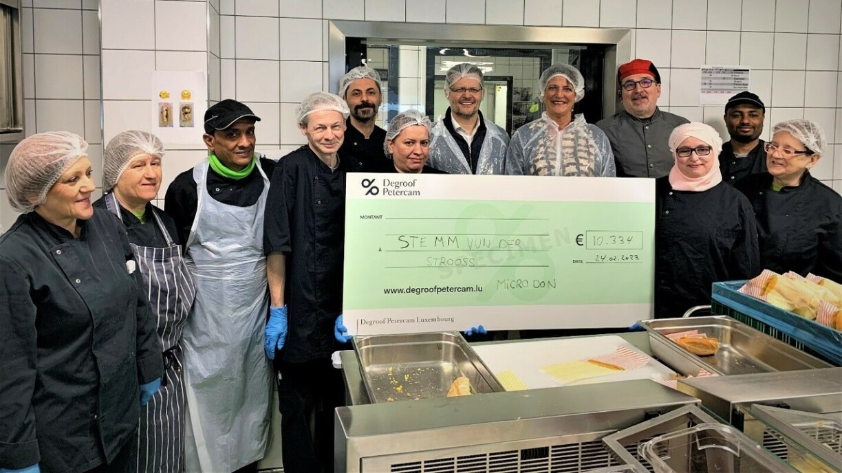 Diese Spende ist das Ergebnis einer Aktion namens “Mikrospende” von Degroof Petercam, bei der die Mitarbeiter jeden Monat einen Teil ihres Gehalts spenden können. Mit dieser Unterstützung wird das neue Sozialrestaurant in Ettelbrück in der 47, Rue Prince Henri, ausgestattet.