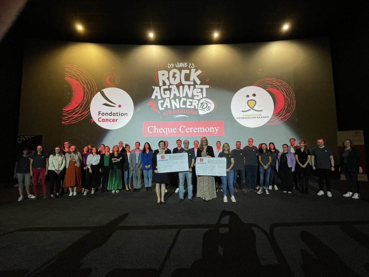 D’Fondation Cancer krut eng Zomm vu 15.000 € iwwerreecht als Ënnerstëtzung fir den alldeegleche Kampf géint Kriibs. D’Lucienne Thommes, Direktesch vun der Fondation Cancer, huet alle Benevollen, Organisateuren, Sponsoren, Museker awer och Participant’en häerzlech Merci gesot. Dës Solidaritéitsaktiounen erméiglechen der Fondation Cancer hir Missioune weider ze realiséieren: Informéieren, hëllefen an d’Fuerschung ënnerstëtzen.
