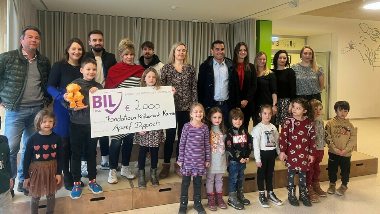 An engem festleche Kader hunn d’Kanner an awer och d’Membere vun der Apeef der Fondatioun Kriibskrank Kanner ee Scheck an Héicht vun 2.000 € konnten iwwerreechen.