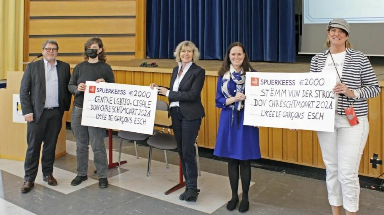 Das Lycée de Garçons Esch hat am 28. März 2022 im Rahmen einer offiziellen Spendenübergabe einen Scheck im Wert von 2000 € an Alexandra Oxacelay, Direktorin der Stëmm vun der Strooss, übergeben. In Anwesenheit von Pascal Bermes und Rita Bohler, Direktor und stellvertretende Direktorin des Gymnasiums in Esch an der Alzette, und von Claudine Bley, Koordinatorin des Weihnachtsmarktes, nahm Alexandra Oxacelay die großzügige Spende entgegen und stellte dabei die Aktivitäten des Vereins sowie das Projekt Caddy 2 in Sassenheim vor, in das das gespendete Geld investiert werden soll.