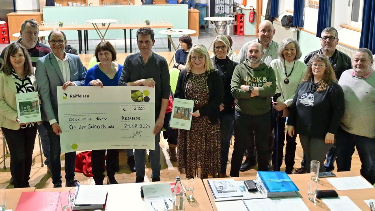 Am Kader vun hirer Generalversammlung mam President Tom Faber huet de Comité vum Kropemannsfest e Scheck vun 2000 Euro un de President Gérard Anzia mam Alice Schroeder iwwerreecht, den der Vereenegung- Op der Schock – zegutt kënnt an déi sech fir Mënschen mat intellektueller Beanträchtegung asetzen.