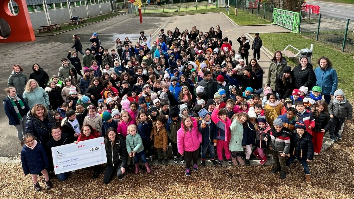 Dank dëser Aktioun konnt der Fondation Cancer eng Zomm vu 2.500 € gespent ginn. D’Kanner aus der Nelly Stein Schoul konnten dunn och virun der Scheckiwwerreechung dem Claudia Gaebel all hir Froe stellen an sech esou e bëssen informéieren zum Thema Kriibs.