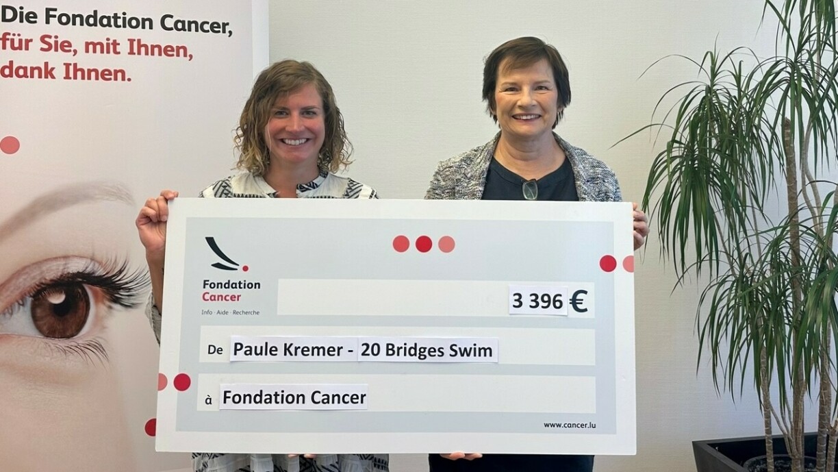 D’Lucienne Thommes, Direktesch vun der Fondation Cancer, huet dem Paule Kremer, wärend der enger Scheckiwwerreechung, häerzlech Merci gesot fir dësen Engagement.