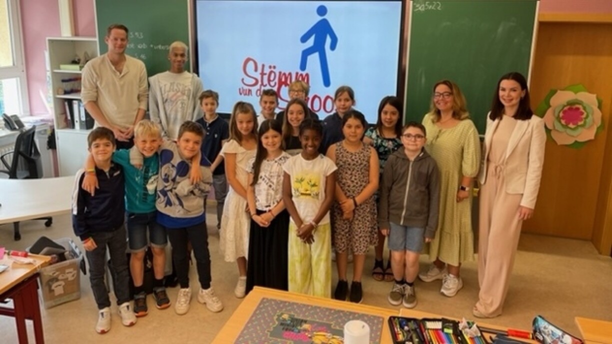 Suite au don effectué par les enseignantes Sandy Mreches et Dalida Olinger, le chargé de communication de la Stëmm, Bob Ritz, accompagné de son stagiaire Avelino Robalo ont eu le plaisir de rencontrer les jeunes champions pour une présentation de l’association. La rencontre a été une belle occasion de sensibiliser aux situations précaires qui existent au Grand-Duché de Luxembourg.