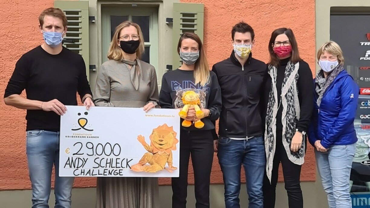 L’objectif de cette manifestation annuelle sportive est de collecter un maximum de dons à reverser à un projet caritatif et c’est ainsi, en présence d’Andy Schleck, que l’a.s.b.l. a pu remettre un très généreux chèque de 29.000 euros à la Fondation Kriibskrank Kanner. La Fondation s’engage quotidiennement auprès d’enfants atteints de cancers et la somme reversée financera une partie des différentes thérapies offertes aux enfants gravement malades, à leur fratrie et à leurs parents. Les représentants de la Fondation remerciement vivement les organisateurs du ANDY SCHLECK CHALLENGE pour cet engagement réel et important avant de donner plus d’explications sur les projets actuels en cours. »