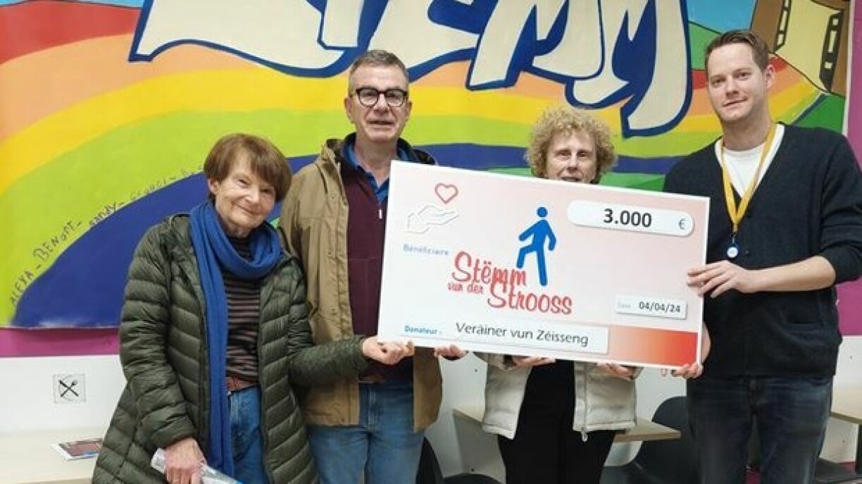The “Veräiner vun Zéisseng” have contributed to the activities of the Stëmm vun der Strooss with a generous donation of €3,000. This impressive sum was the result of an Advent market organised by the Veräiner vun Zéisseng. It should also be added that the Stëmm had already received a donation of €1,500 a few months earlier, which came from the proceeds of the “Duerffest” in Cessange.