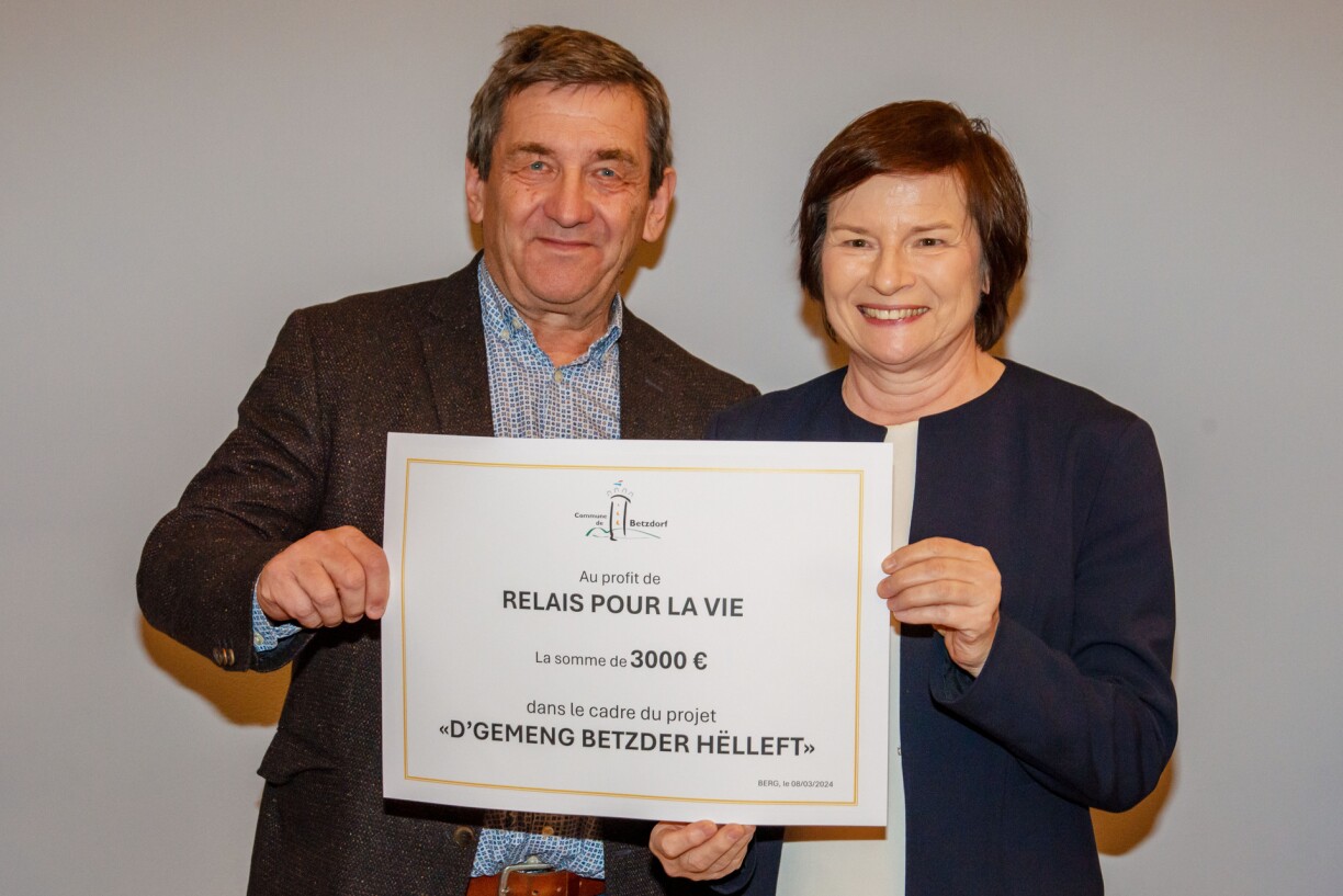 „D’Initiativ ‘D’Gemeng Betzder hëlleft’ ass op d’Bee gestallt gi mam Ziel ee bis zweemol d’Joer verschidden international a lëtzebuergesch Hëllefsorganisatioun mat engem Don ze ënnerstëtzen.“ seet de Marc Ries, Buergermeeschter vun der Gemeng Betzder.