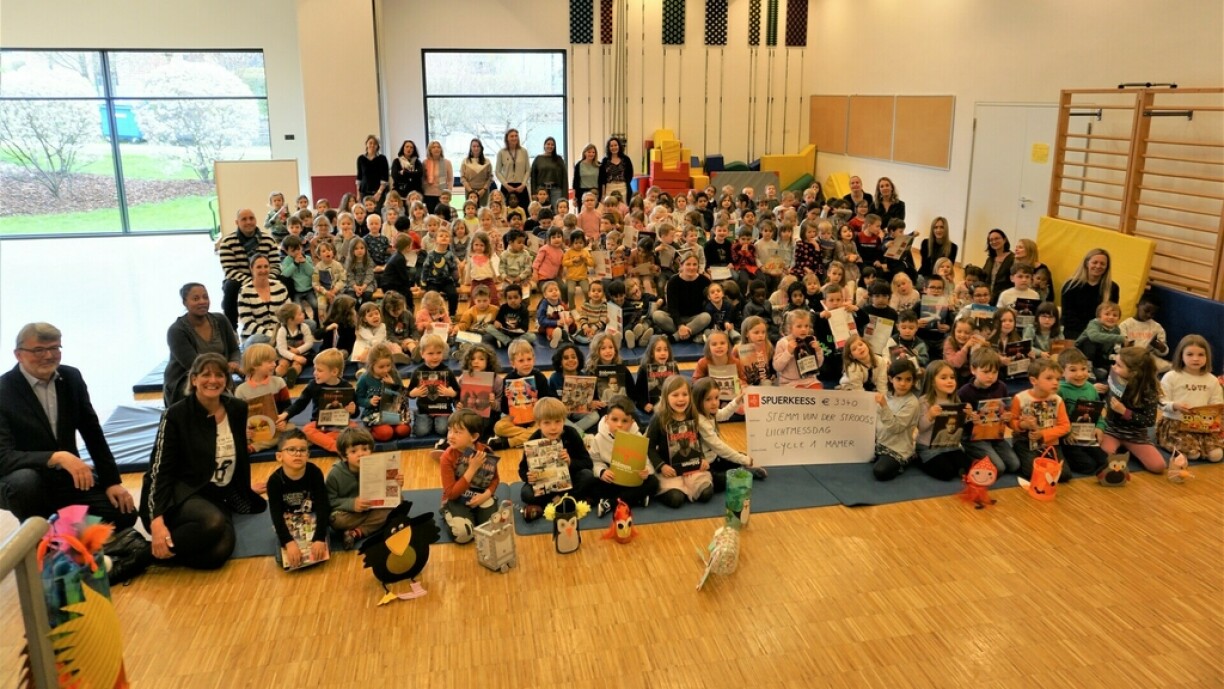 La somme de 2340 € récoltée est le fruit de la fameuse tradition « Liichtmëssdag » lors de laquelle les enfants ont chanté aux portes de leurs familles, enseignants et élèves de tous les cycles au profit des personnes défavorisées accueillies chaque jour au sein des restaurants sociaux de l’asbl à Hollerich, Esch-sur-Alzette et Ettelbruck. La commune de Mamer a contribué 1000 € à leur don afin d’atteindre la généreuse somme de 3340 €.