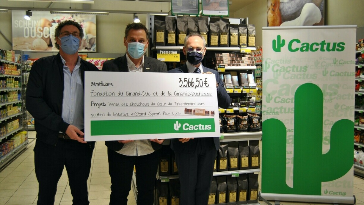 La vente des chocolats solidaires Chouchous du Cœur produits dans les Ateliers du Tricentenaire a permis de récolter 3 566,50 € au cours de l’année écoulée. Ainsi, un chèque a pu être remis à la Fondation du Grand-Duc et de la Grande-Duchesse en faveur de l’initiative « Stand Speak Rise Up ! », visant à soutenir les victimes de violences sexuelles dans les zones sensibles.