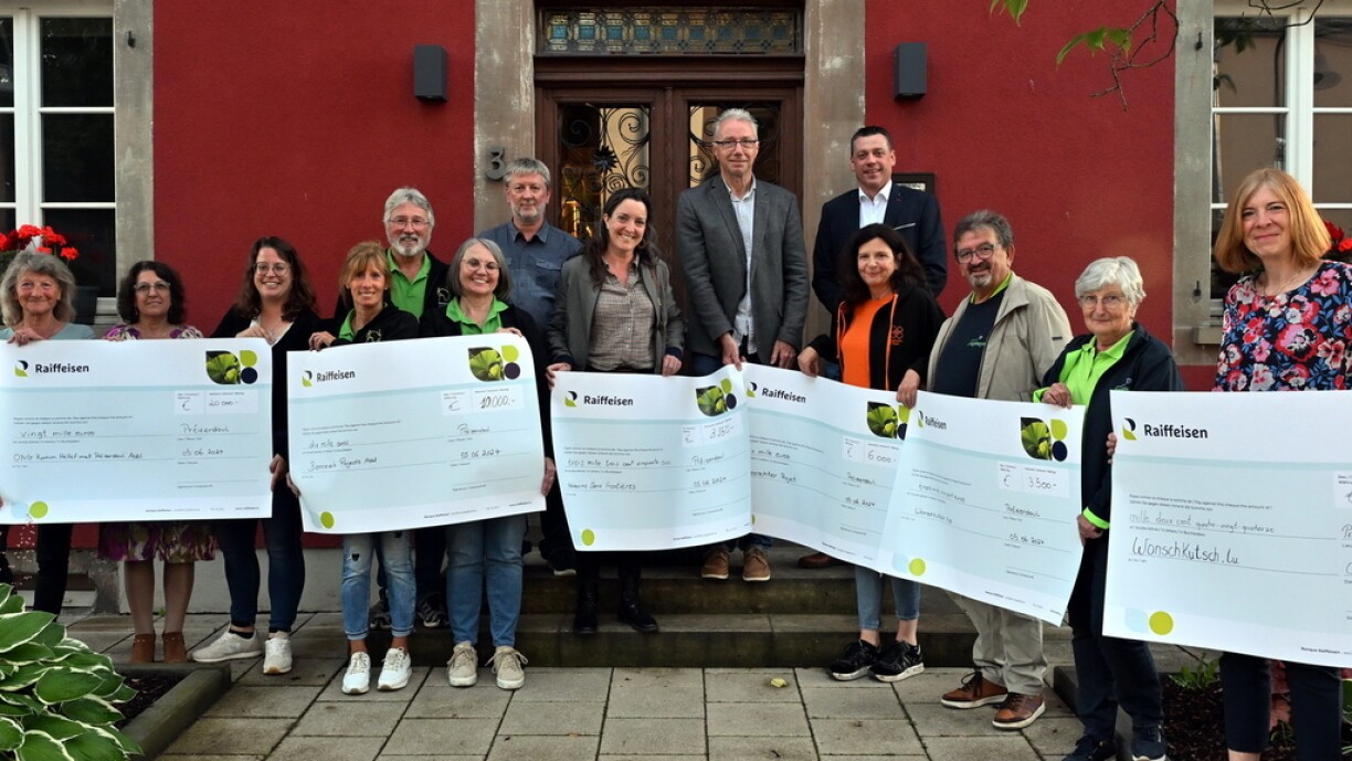 Am Kader vun enger Feier kruten d’Organisatioune Schecken an Héicht vun am Ganzen 42.850 € iwwerreecht. Déi verschidden Vertrieder vun der ONG “Komm Hëllef mat Préizerdaul”, “Bonnievale Projects”, “Médecins sans frontières”, “Plooschterprojet”, a „"Wonschkutsch” hunn sech erfreet iwwert dëse generéise Geste vun der Préizerdauler Gemeng gewisen.