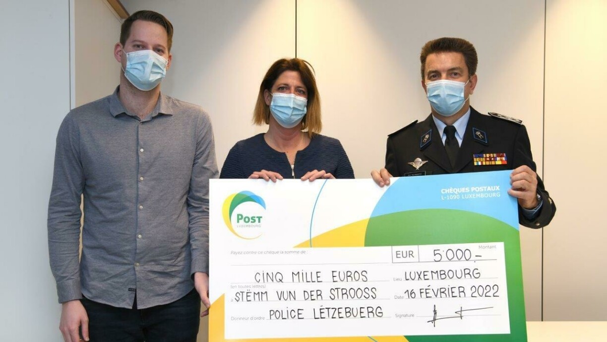 Communiqué de presse : La Police grand-ducale fait un don pour le projet Caddy 2.Dans le cadre de la traditionnelle « Action sociale » de la Police grand-ducale, un appel interne a été lancé l’année dernière pour soutenir la Stëmm vun der Strooss. A l’aide d’une vidéo tournée par la Police grand-ducale, les agents de police ont été sensibilisés aux activités de l’association. Une interview avec la directrice de la Stëmm, Alexandra Oxacelay, a également permis de présenter le nouveau projet Caddy 2. à Sanem, pour lequel le don récolté sera utilisé.